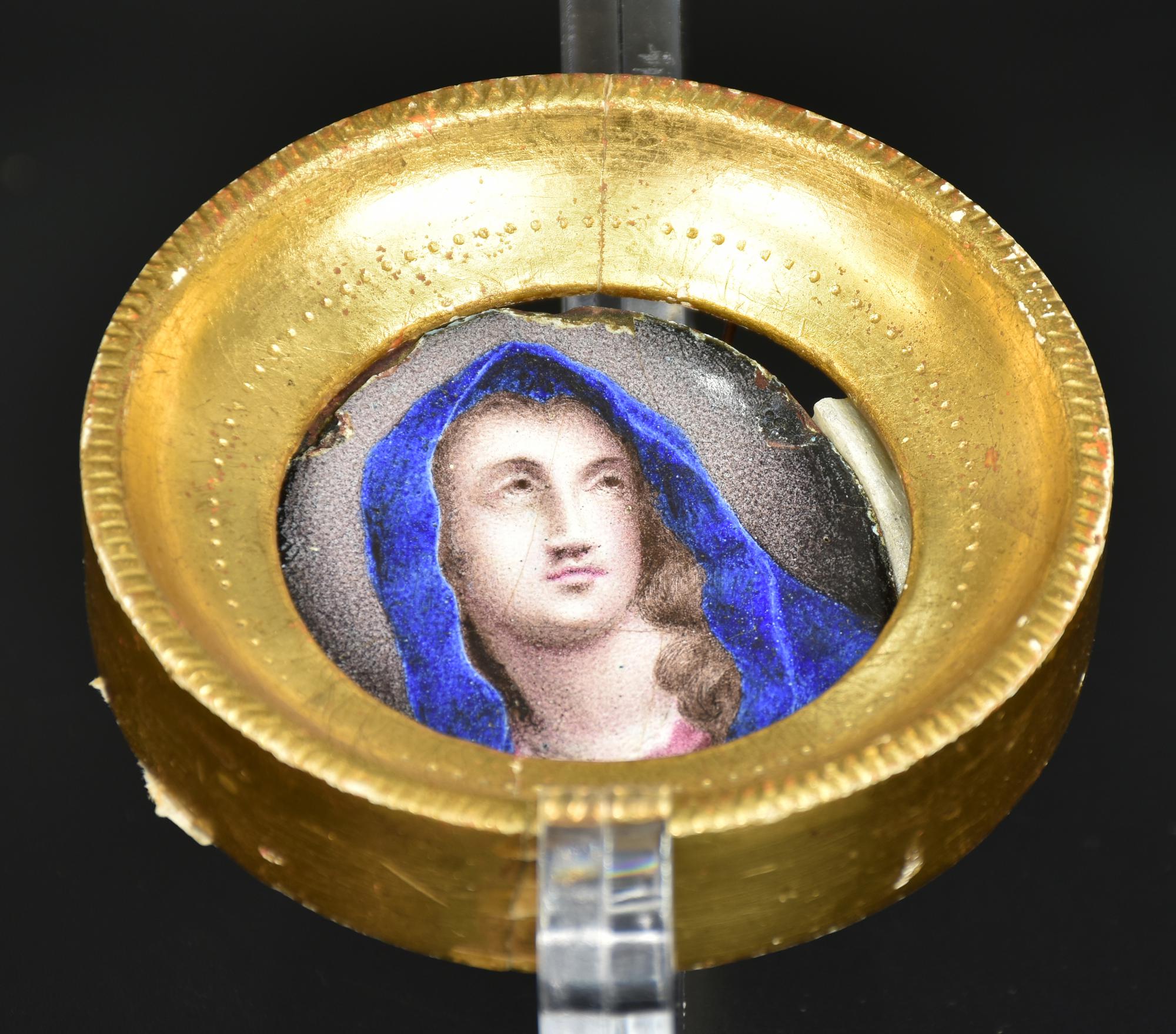Scuola del XIX secolo MADONNA ceramica invetriata entro cornice, diam cm 5,...