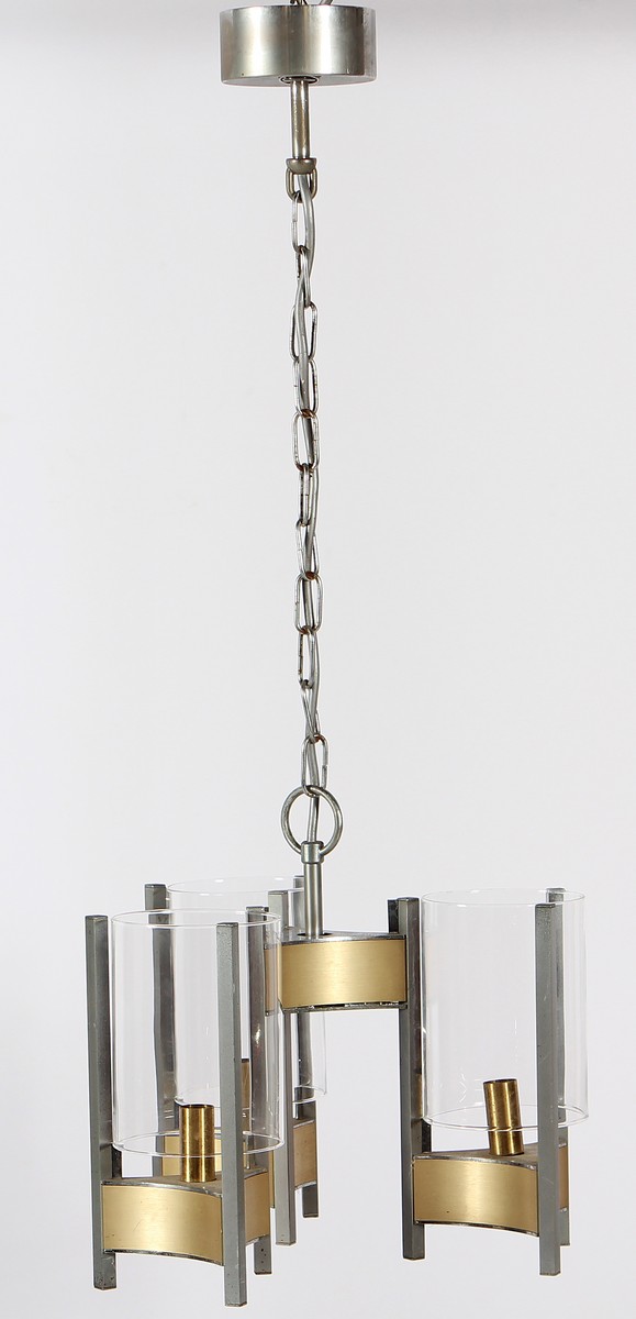 SCIOLARI GAETANO Lampadario a tre luci. 1965. Ottone e metallo laccato. Cm...