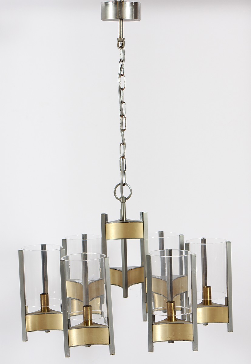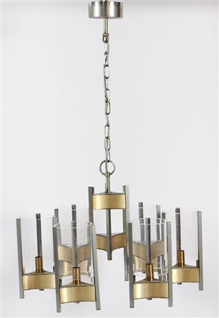 SCIOLARI GAETANO Lampada da soffitto a sei luci. 1968. Ottone e metallo...
