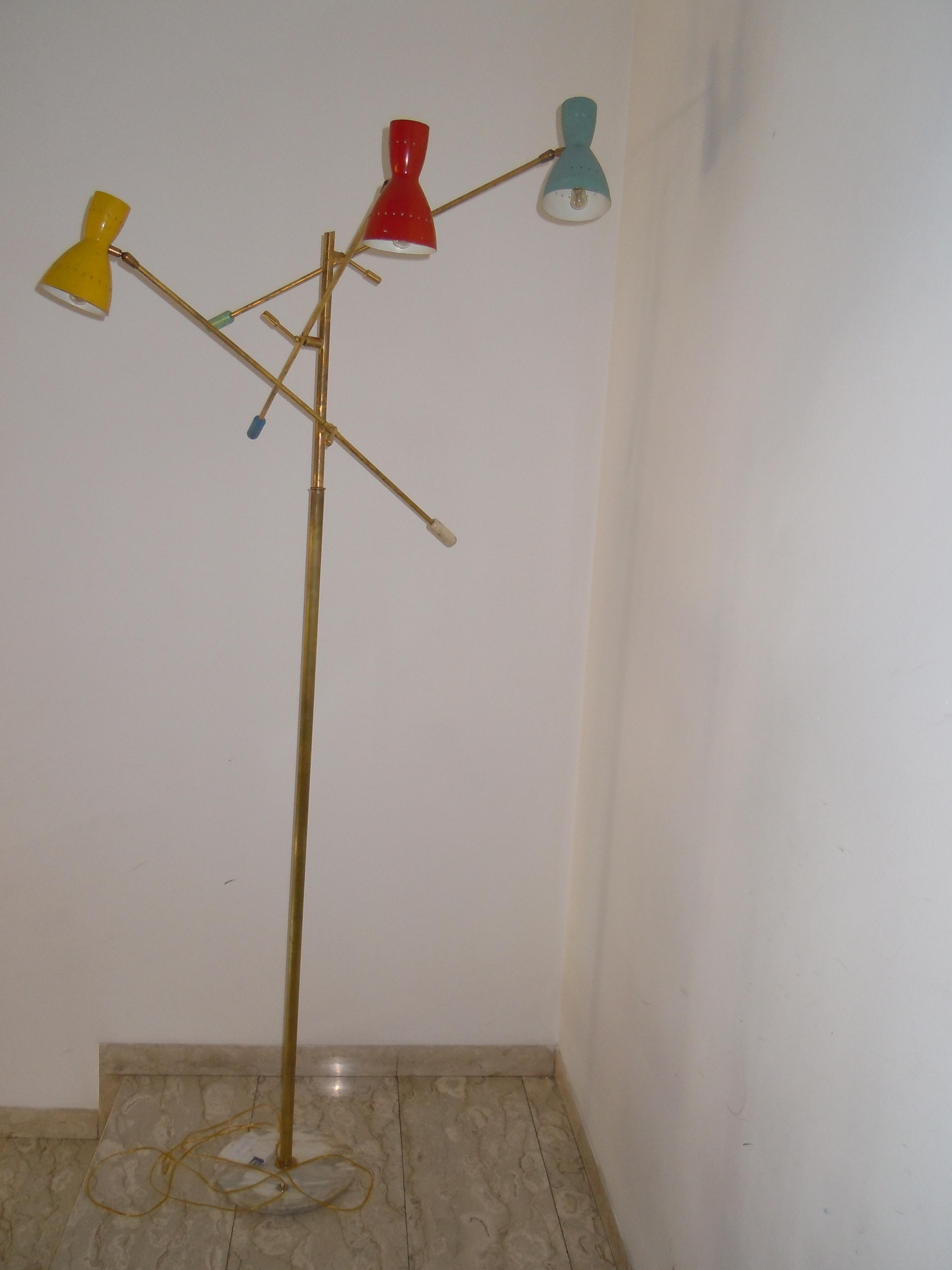 MANIFATTURA ITALIANA DEL XX SECOLO Lampada da terra. Ottone e metallo laccato. Cm 110,00 x 220,00. Anni `50.