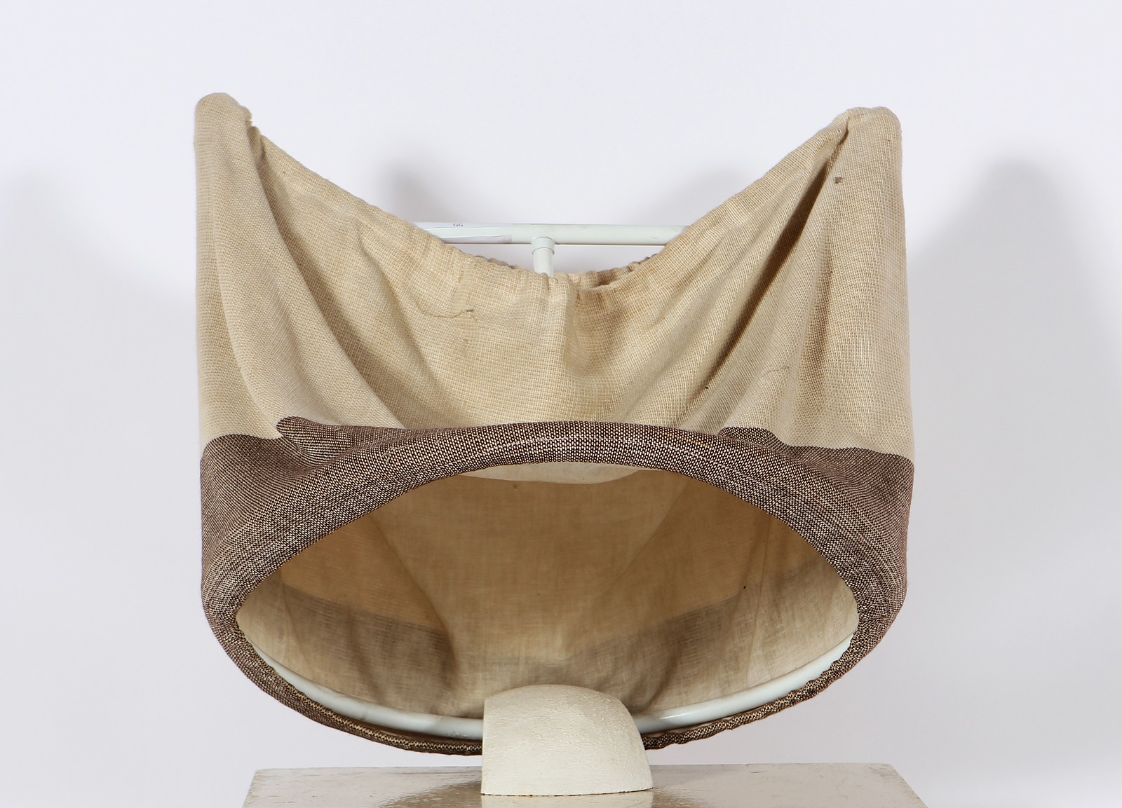 BELLINI MARIO (n. 1935) Coppia di lampade modello Circo. Metallo e tessuto. . Prodotte per artemide. Lampada piccola: cm 42x40x44; Lampada grande: cm 50x45x60.