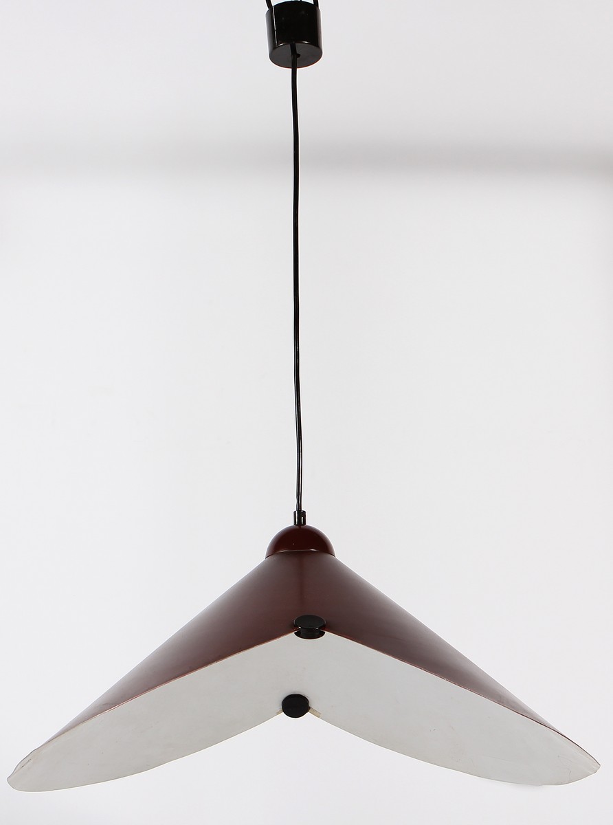 STILNOVO Lampadario. Metallo laccato. Cm 27,00 x 60,00 x 42,50. Anni '70.