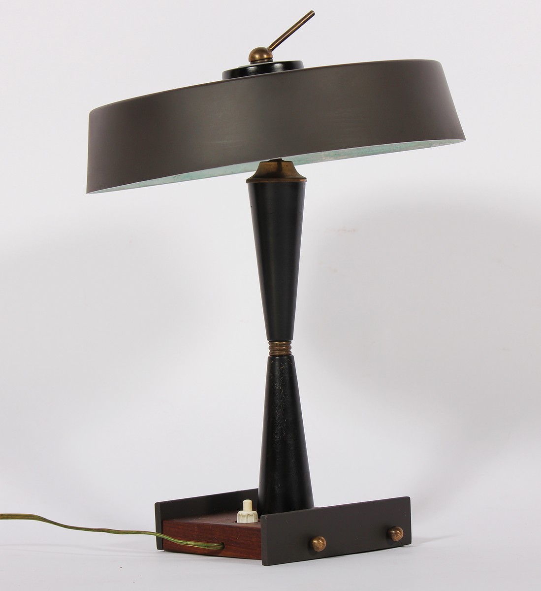 MANIFATTURA ITALIANA DEL XX SECOLO Lampada da tavolo. Metallo e legno. Cm 26,00 x 34,00. Anni '50.
