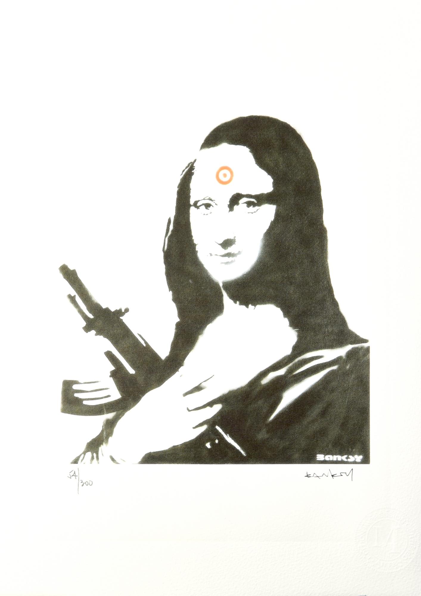 Da Banksy MONA LISA AK47 eliografia su carta Arches, cm 38x28; es. 54/300...