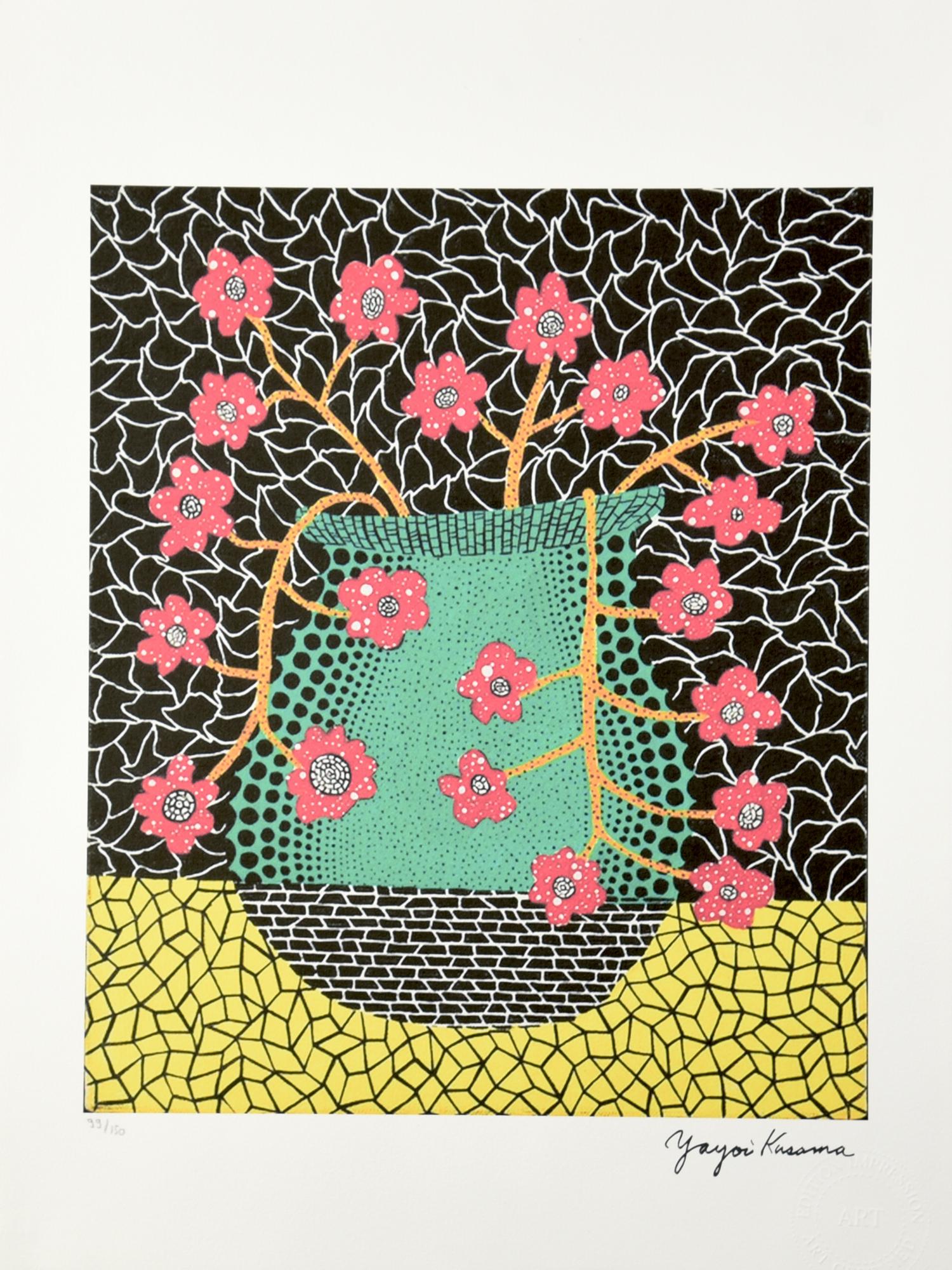 Da Yayoi Kusama VASO DI FIORI eliografia, cm 38x28; es. 99/150 tiratura e...