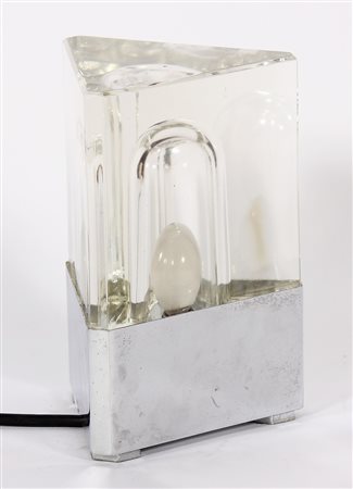 MANIFATTURA ITALIANA DEL XX SECOLO Lampada da comodino. Vetro e metallo. Cm 19,50 x 13,00. Anni '70.