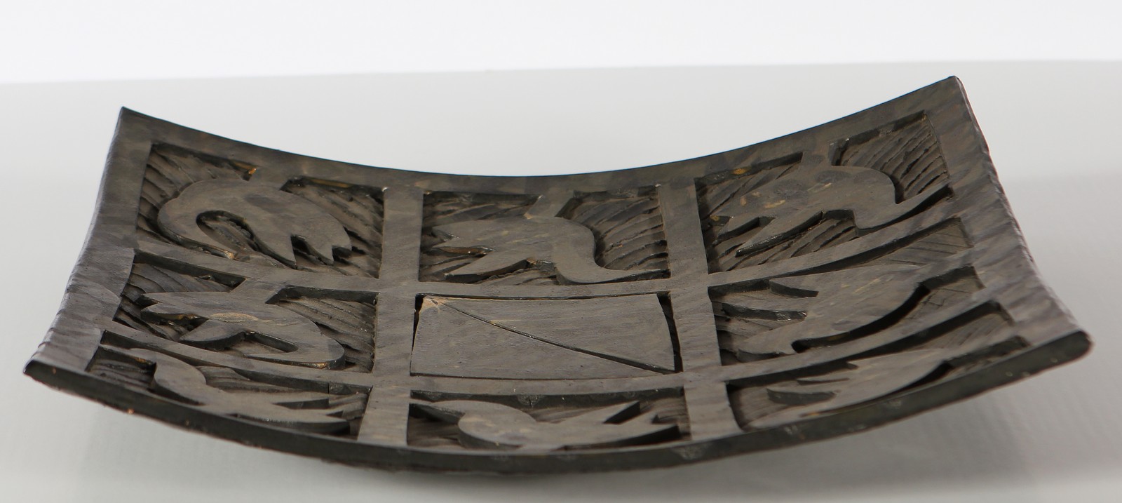 TASCA ALESSIO (n. 1929) Centrotavola. Ceramica. Cm 42,50 x 43,50 x 7,00. Produzione Nove-Vicenza.