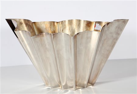 SABATTINI LINO (n. 1925) Vaso Ventaglio. Metallo argentato. Cm 50,00 x 24,00 x 27,00. Anni '60.
