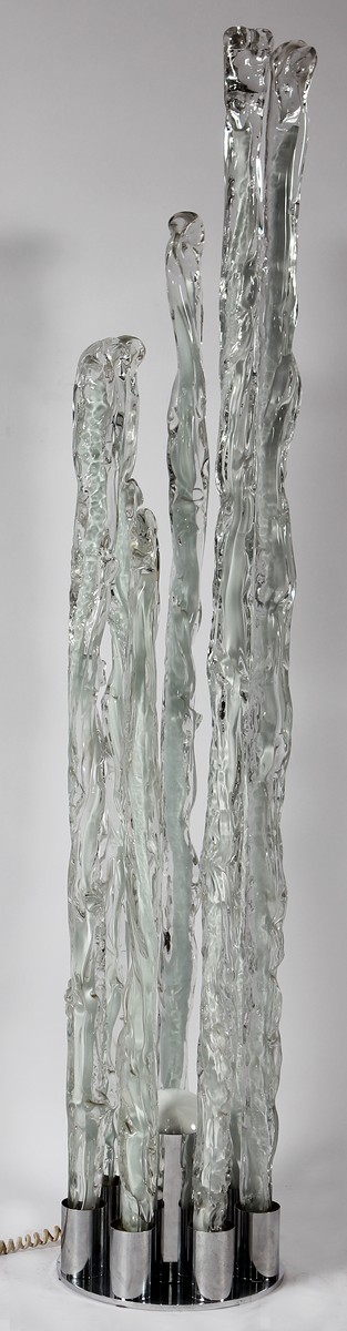 LINEA GB MILANO Lampada da terra. Vetro di Murano. Cm 161,00. Prodotto per Mazzega. Anni '70. Diametro 30 cm.