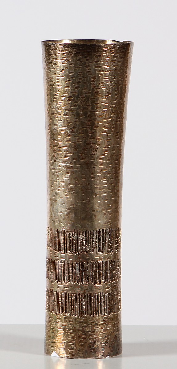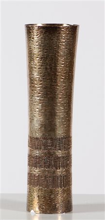 PINTON MARIO Vaso. Metallo argentato. Cm 33,50 x 10,00. Prodotto per Atelier des Orfevres. Marchio inciso sotto la base.
