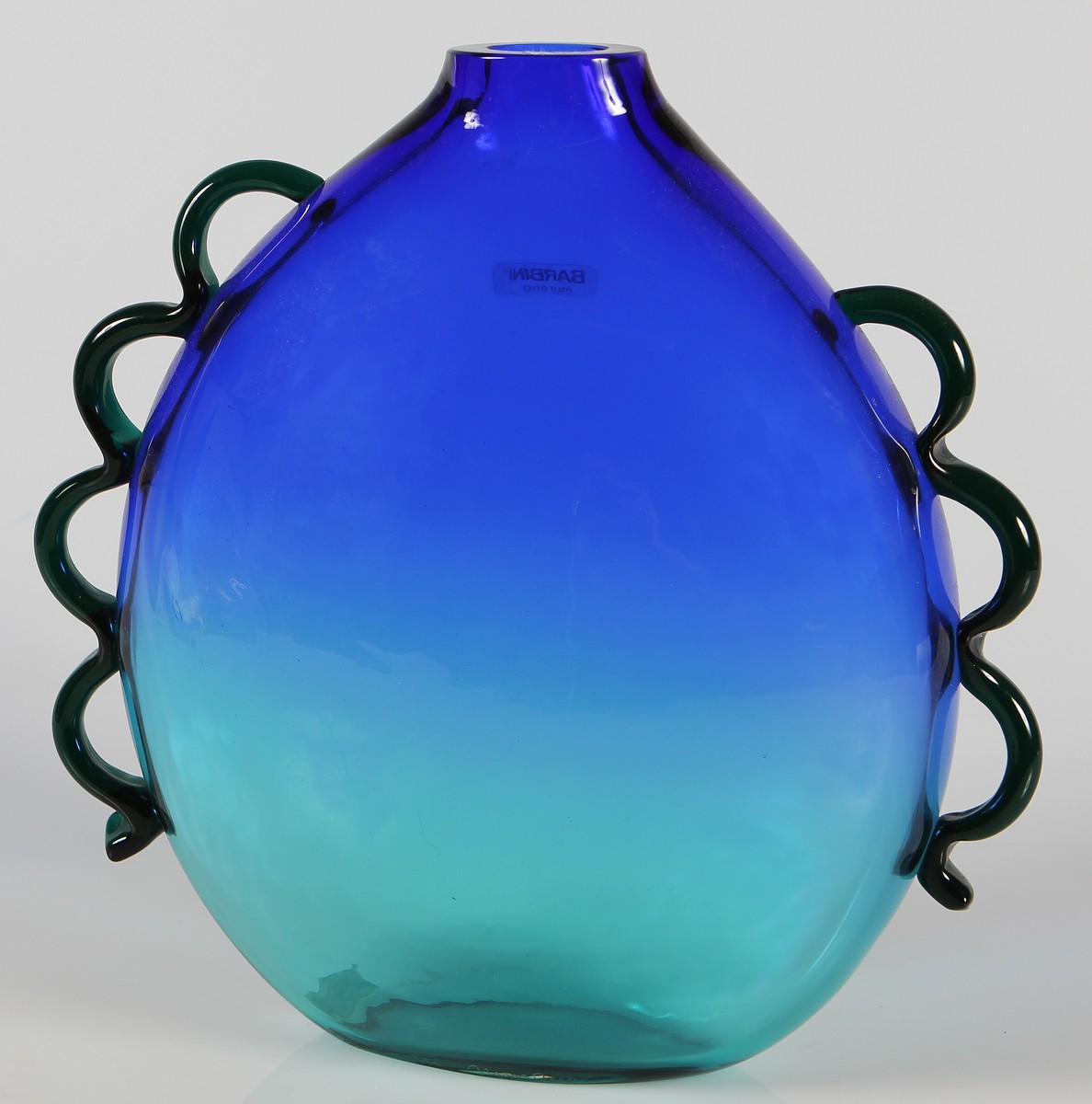 BARBINI ALFREDO (1912 - 2007) Vaso. Vetro di Murano. Cm 25,00 x 27,00 x 7,00. Vaso in vetro di Murano di colore blu. Anni '80.