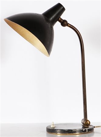 STILNOVO Lampada da tavolo. Ottone e alluminio. Cm 28,00 x 44,00 x 19,00. Anni '50.
