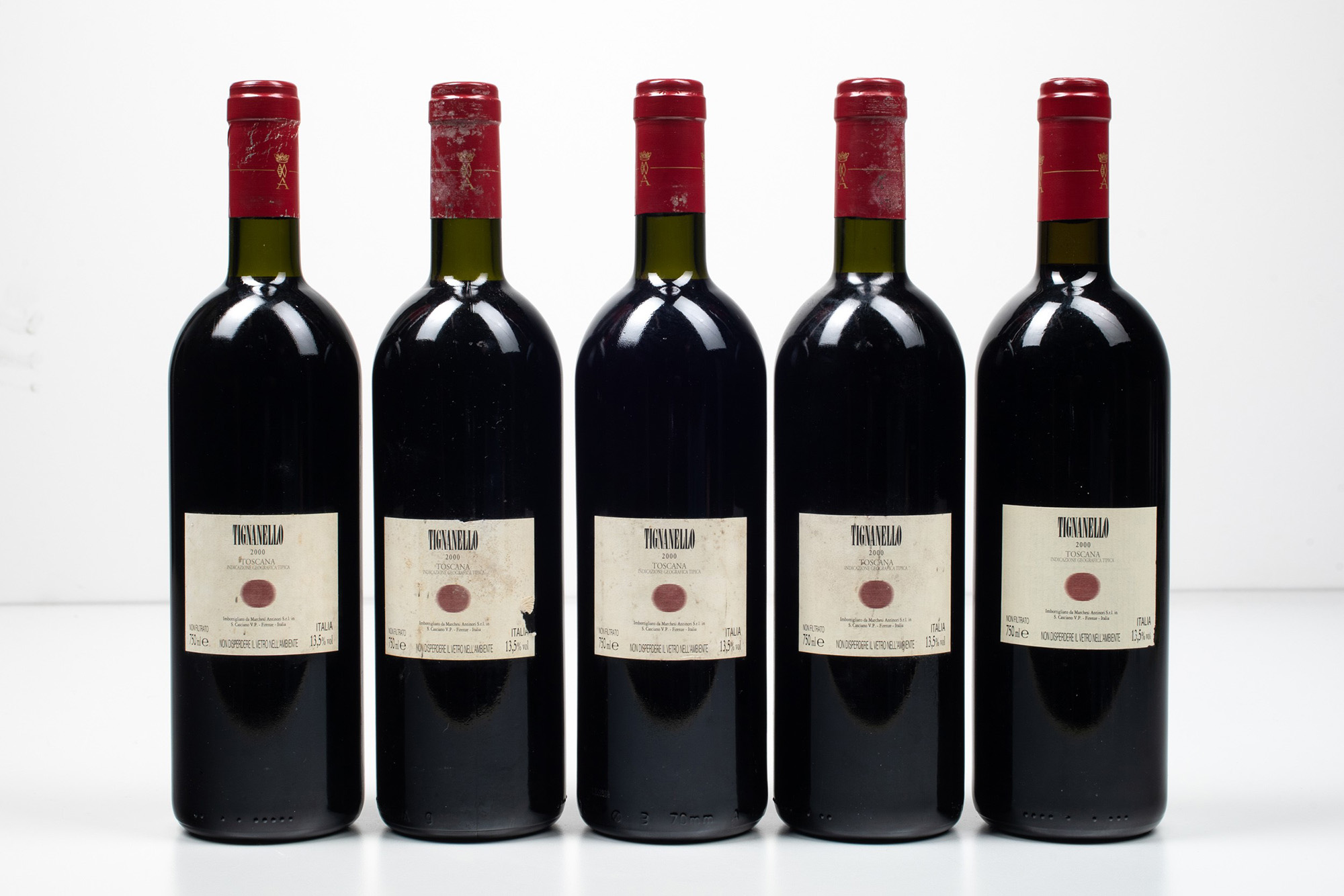 Antinori, Tignanello, (5 Bts), 2000, 2 Bts WN, 3 Bts BN, (etichette danneggiate e capsule con segni d'usura del tempo)