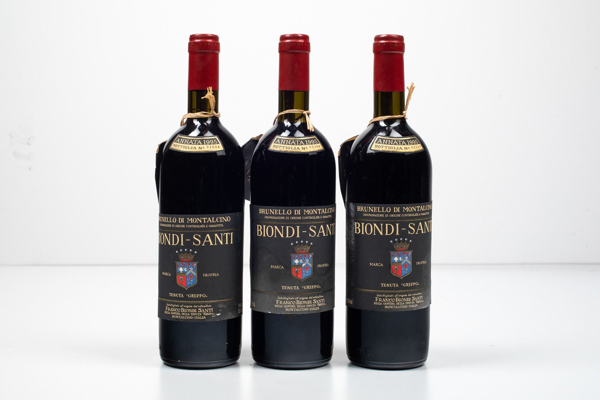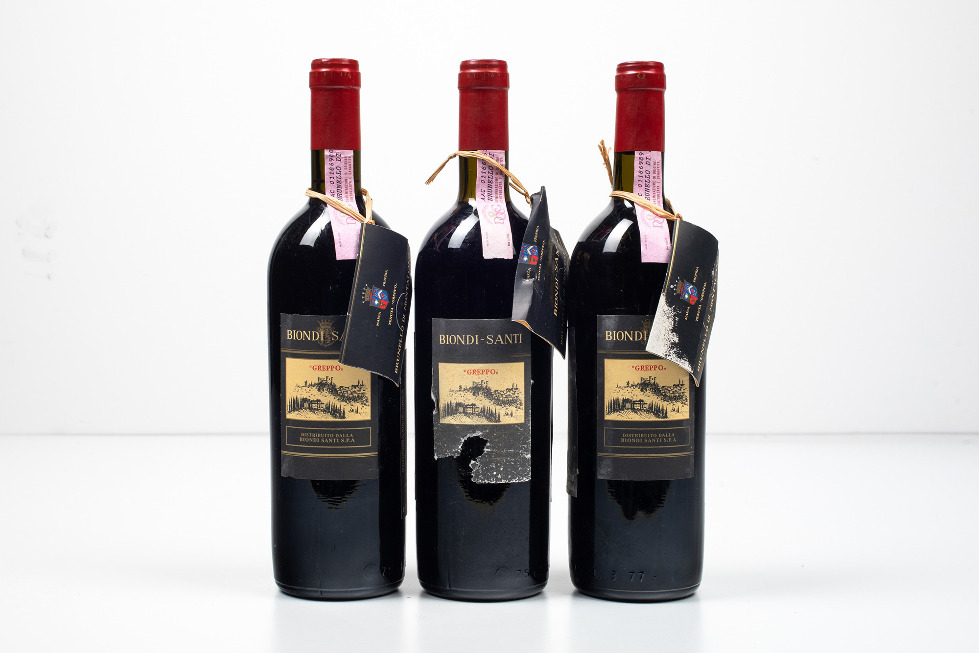 Biondi Santi Tenuta Il Greppo, Brunello di Montalcino, (3 Bts), 1995, 3 Bts TS, (etichette e capsule con segni d'usura del tempo), bottiglie nr. 01604, 01306 e 01587