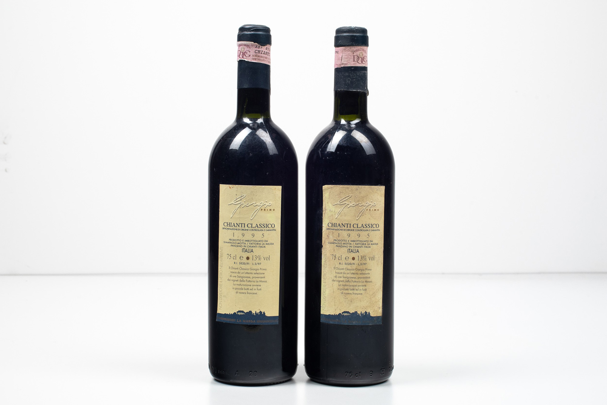 Fattoria La Massa, Chianti Classico Giorgio Primo, (2 Bts), 1995, 2 Bts TS, (etichette macchiate e capsule con segni d'usura del tempo)