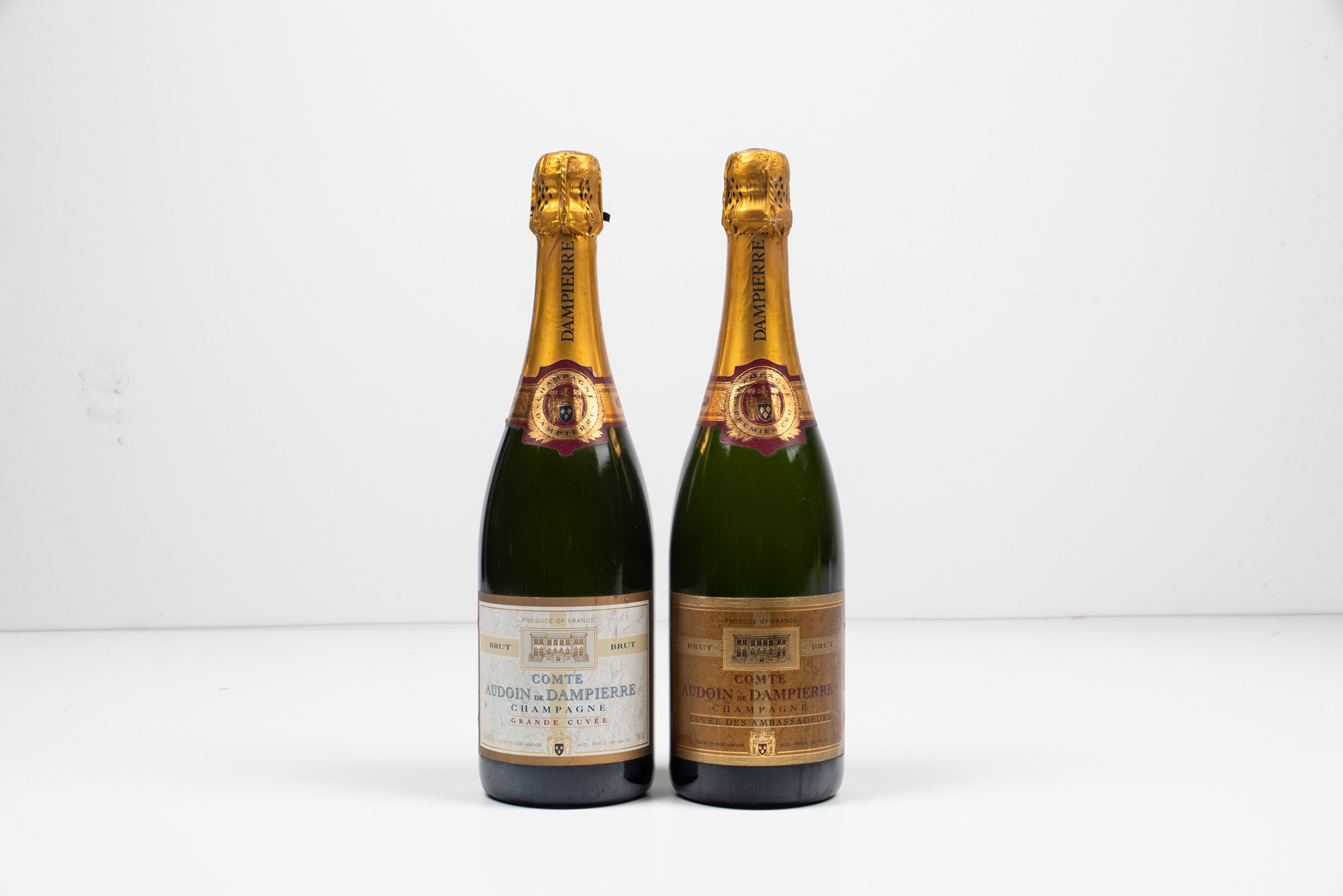 Comte Audoin de Dampierre, Champagne Grande Cuvee Brut Comte Audoin de Dampierre, Champagne Cuvee des Ambassadeurs Brut, (2 Bts), 2 Bts BN, (etichette e capsule con segni d'usura del tempo)