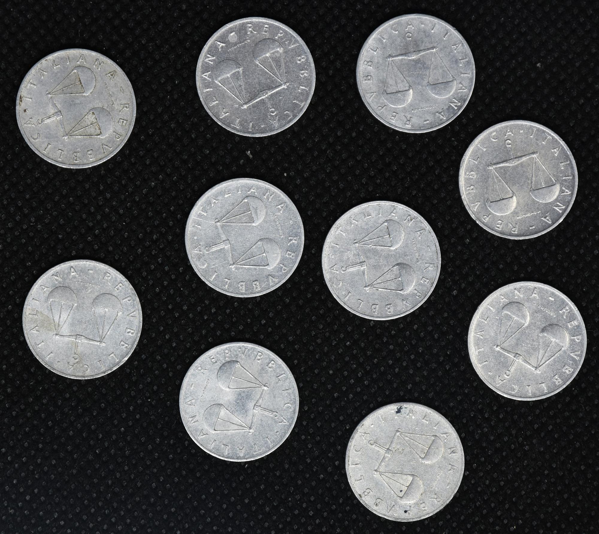 Previous Lot 19 Next Livebid - Via Tiziano Vecellio 34/D, 10126 Torino MONETE DEL MONDO E ITALIANE Sessione Unica Thursday 5 May 2022 hours 21:00 (UTC +01:00) LOTTO DI 10 MONETE REPUBBLICA ITALIANA da 1 lira 1958 LOTTO DI 10 MONETE REPUBBLICA ITALIANAda 1 lira 1958