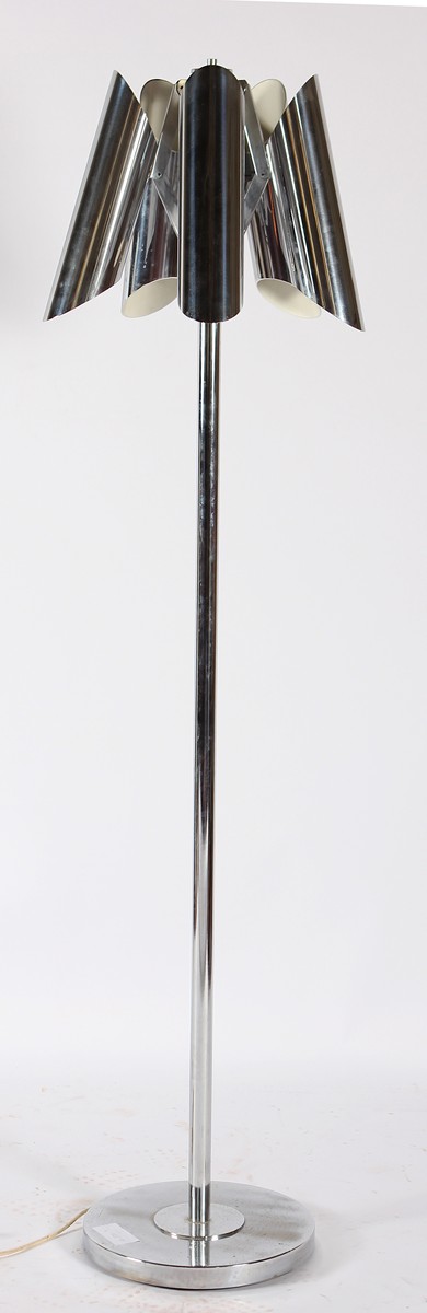 TORLASCO OSCAR Lampada da terra. Metallo cromato. Cm 68,00 x 160,00. Prodotto per Thomas Industries Bologna. Pubblicato rivista Formaluce 1971.