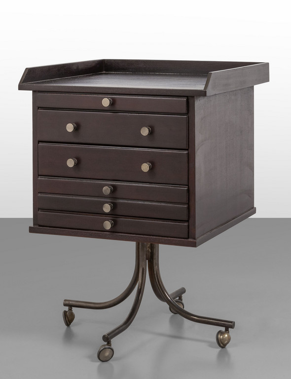 Un comodino su rotelle della serie 'Romantica' per LA RINASCENTE 1961.