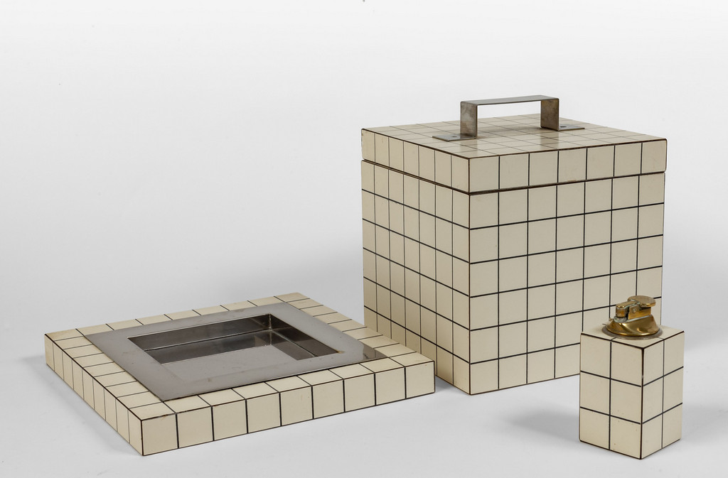 UN CUBO PORTAGHIACCIO UN POSACENERE UN ACCENDISIGARI anni '70.