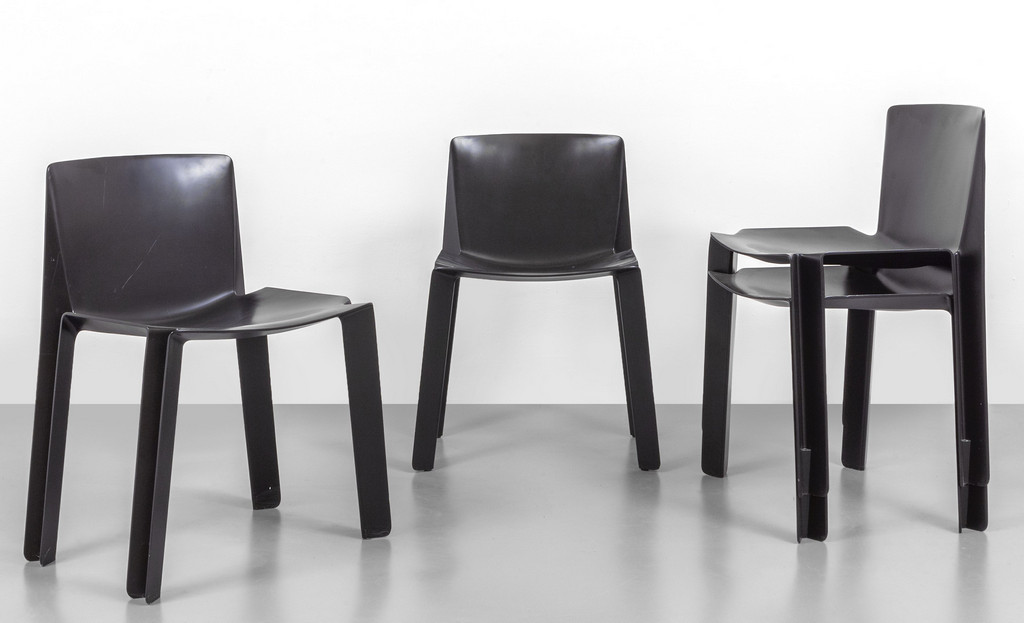 Quattro sedie sovrapponibili 'Enneuno' per C&BITALIA 1970.