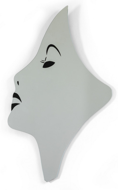Cristallo sagomato serigrafato argentato montato su telaio di MDF.