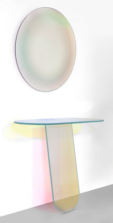 Una console con specchio modello 'Schimmer' per GLAS ITALIA 2015.