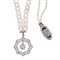 Girocollo con pendente in oro bianco, diamanti, due fili di perle e zaffiri