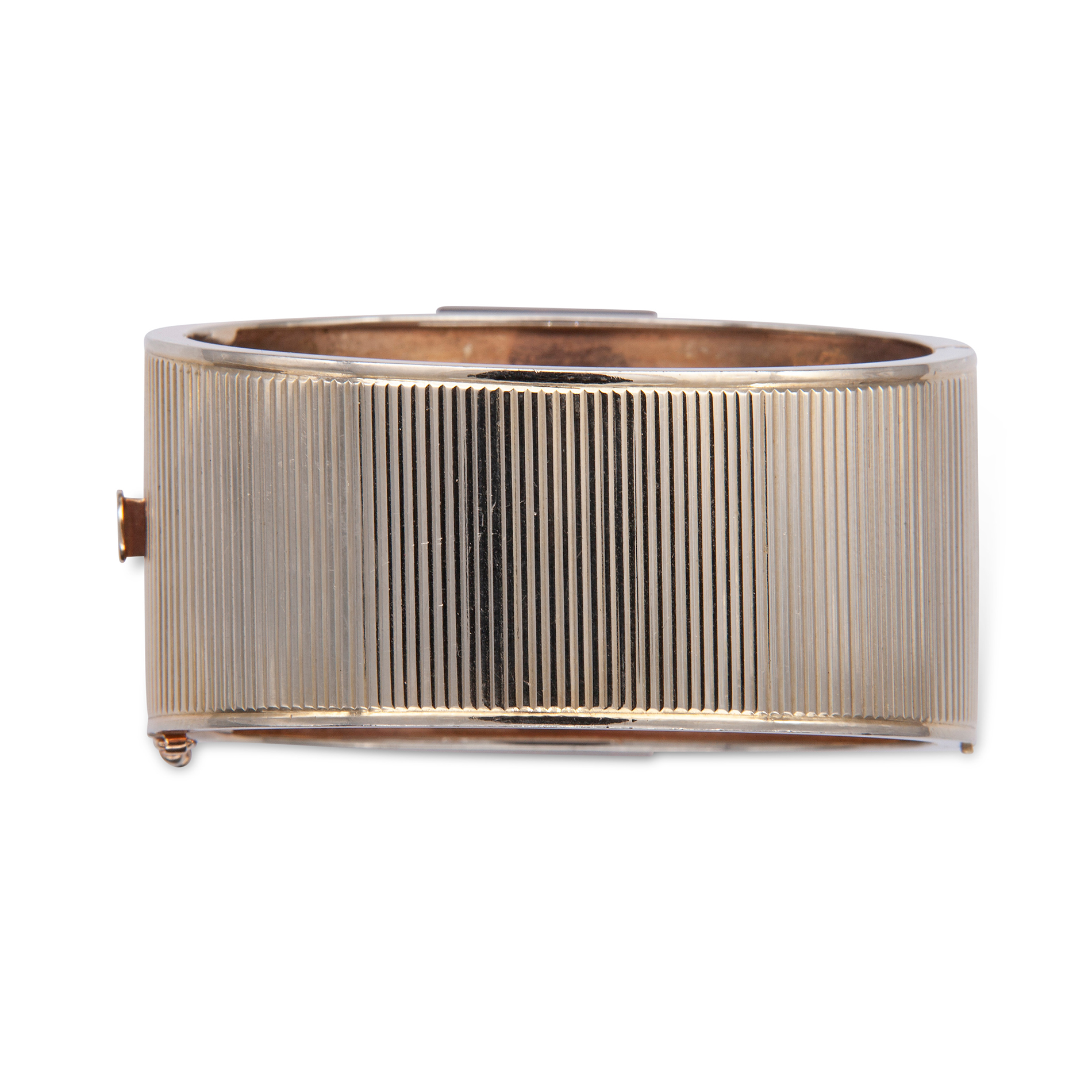 Bracciale rigido a fascia in oro giallo, grande quarzo, diamanti e rubini