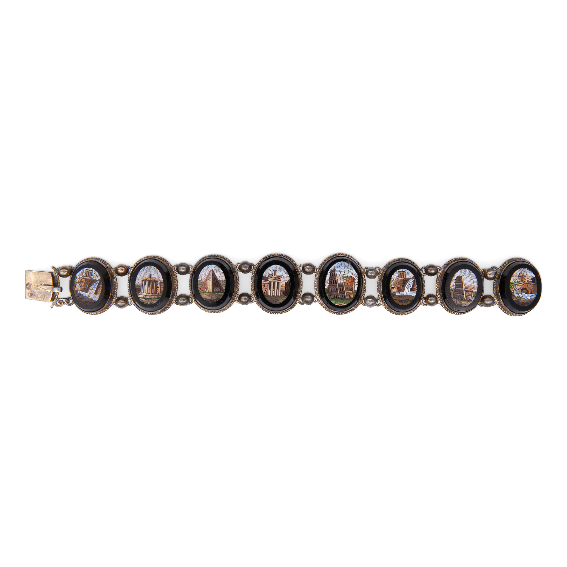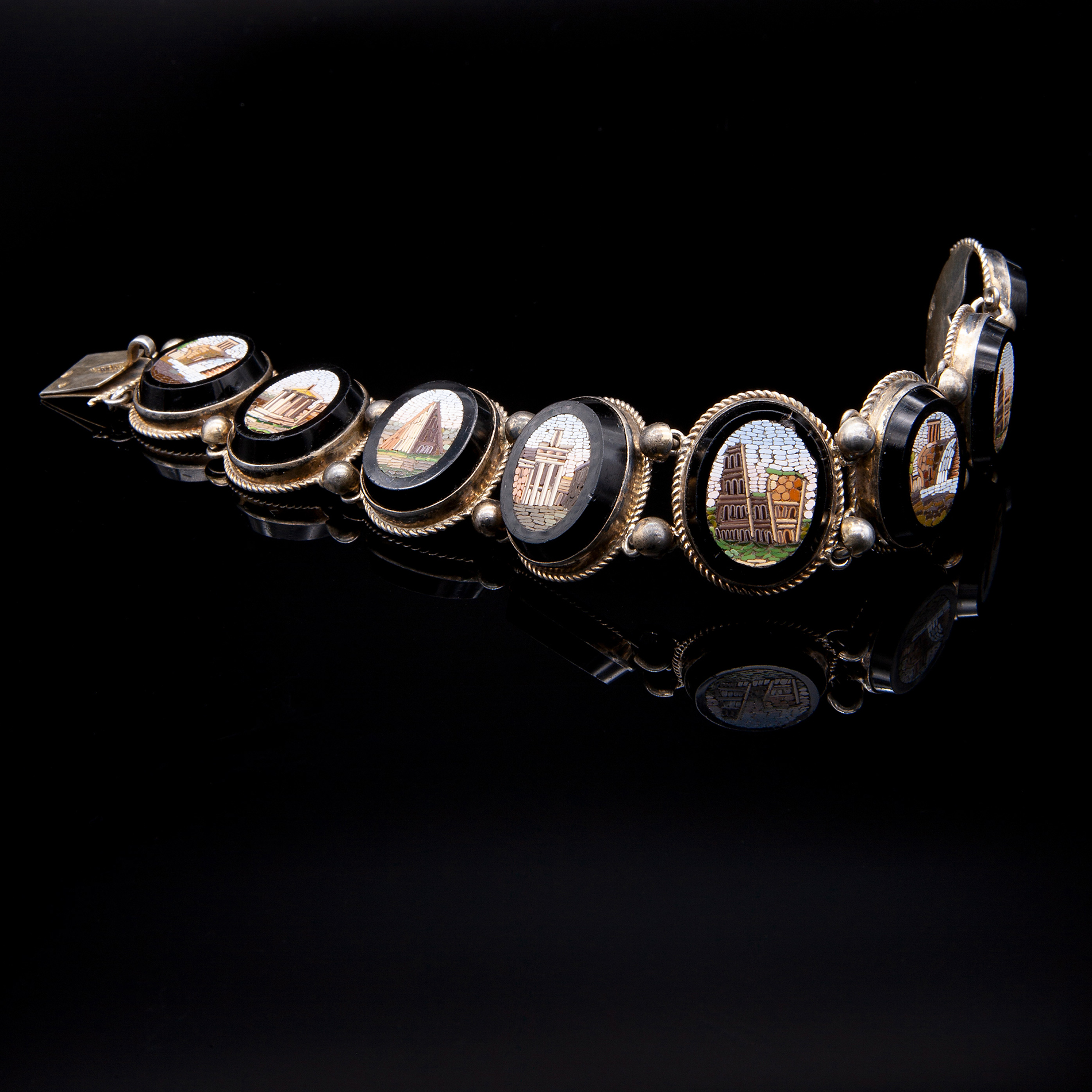 Bracciale in argento e micromosaici Micromosaici raffiguranti monumenti romani, peso complessivo gr. 37,6