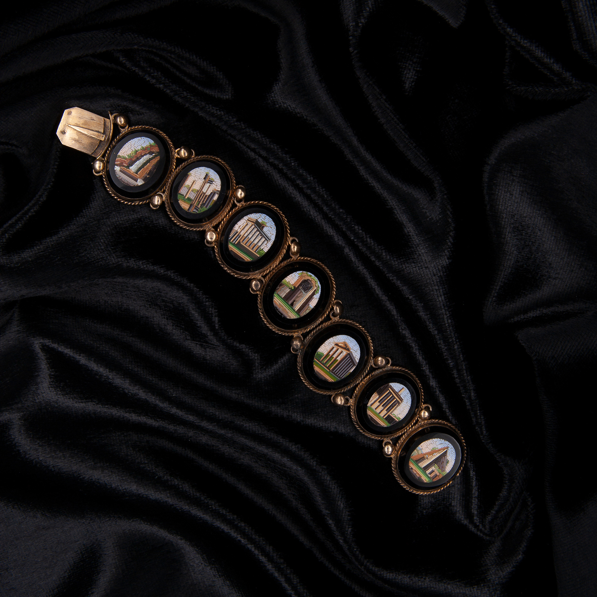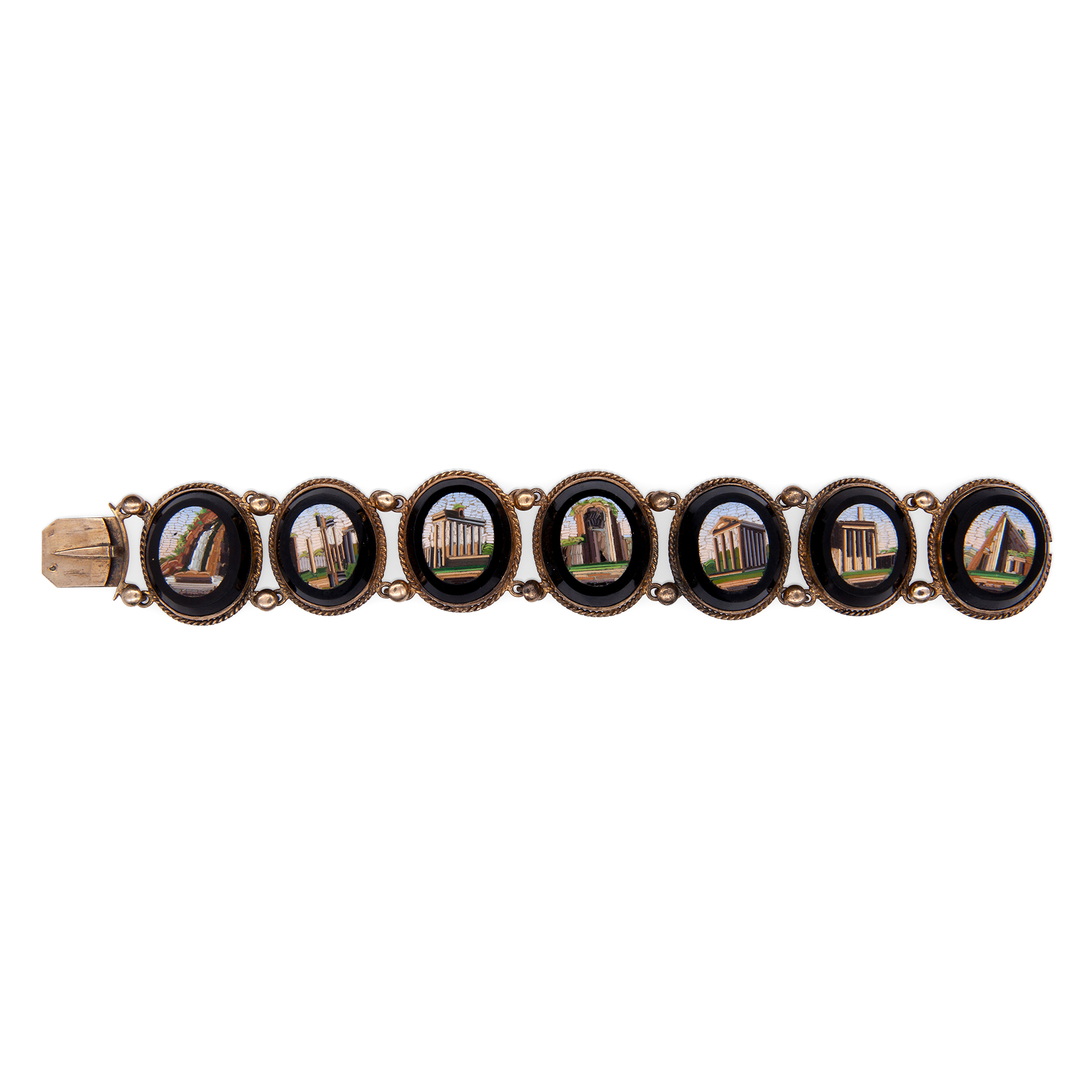 Bracciale in argento dorato con micromosaici Micromosaici raffiguranti monumenti romani, peso complessivo gr. 40 ca