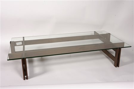 PARISI ICO (1916 - 1996) Coffee table. Legno e vetro. Cm 140,00 x 74,00 x 25,00. Marchio Cassina.