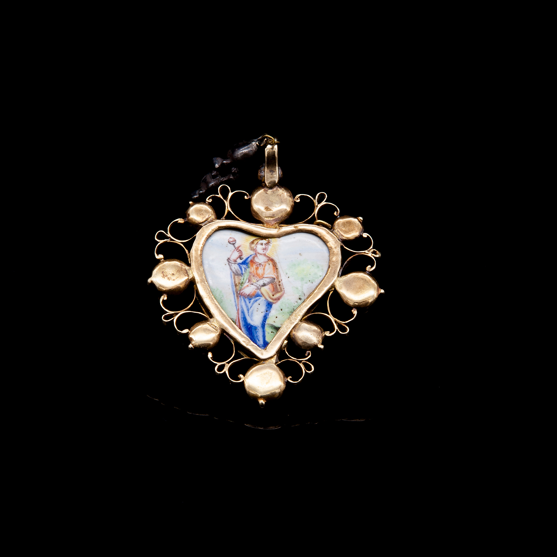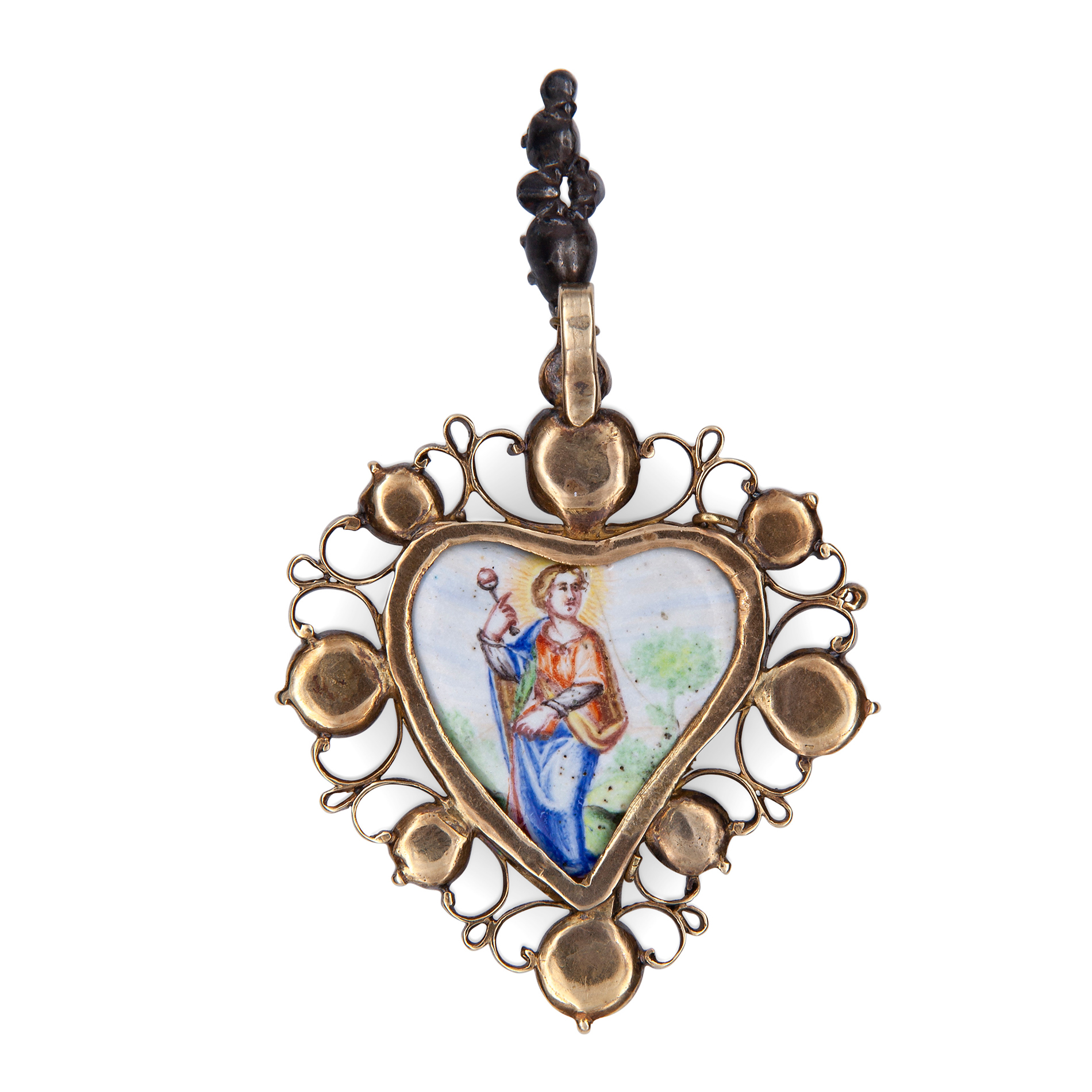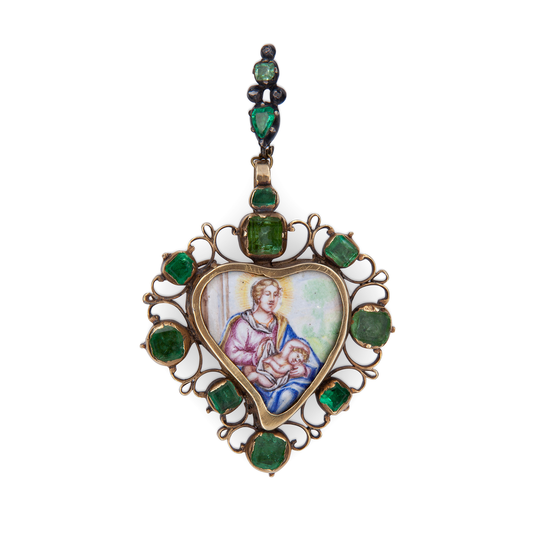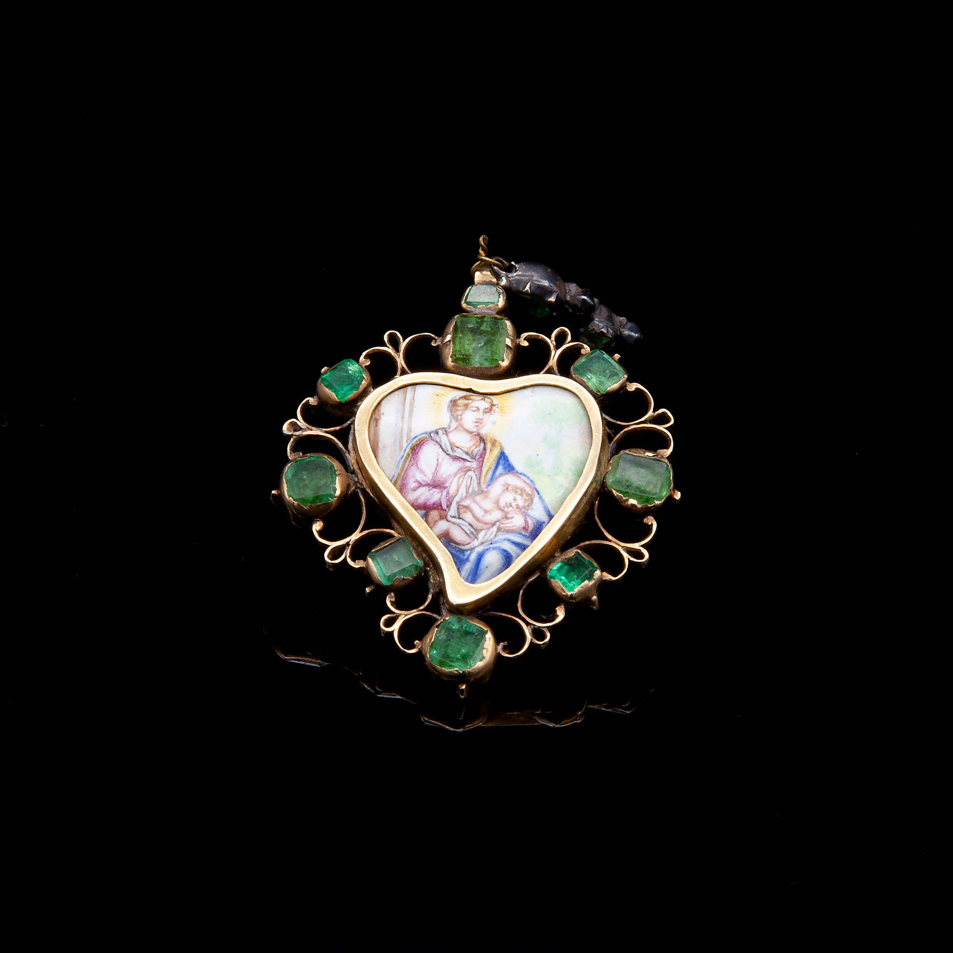 Antico pendente in oro, smalti e smeraldi Manifattura siciliana del XVII secolo, opera del maestro messinese Joseph Bruno, peso complessivo gr. 16,50