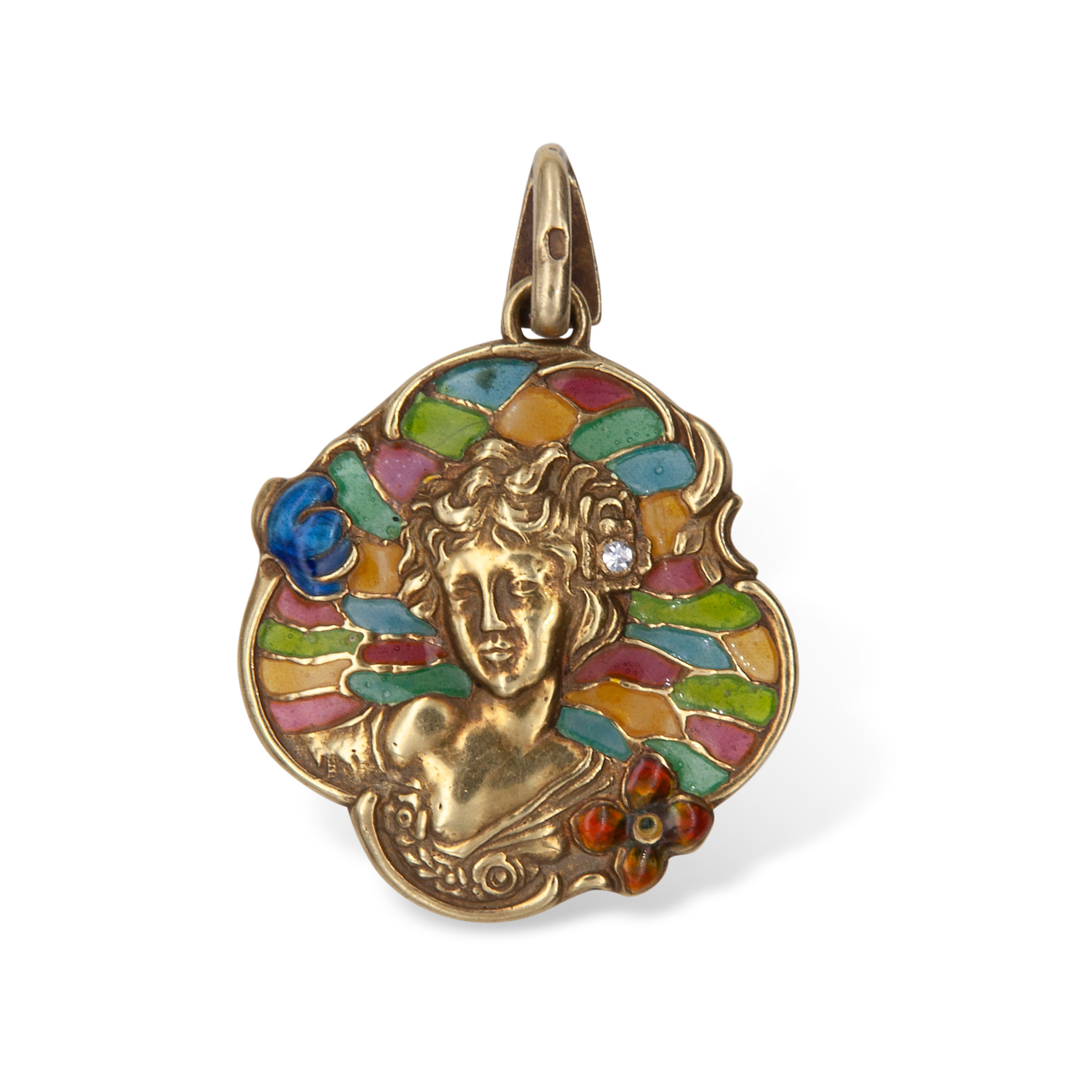 Pendente in oro e Plique-à-jour, Francia inizi del XX secolo In oro giallo 18 kt