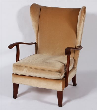 BUFFA PAOLO (1903 - 1970) Poltrona. Legno e tessuto. Cm 71,00 x 101,00 x 68,00. Anni '40/'50.