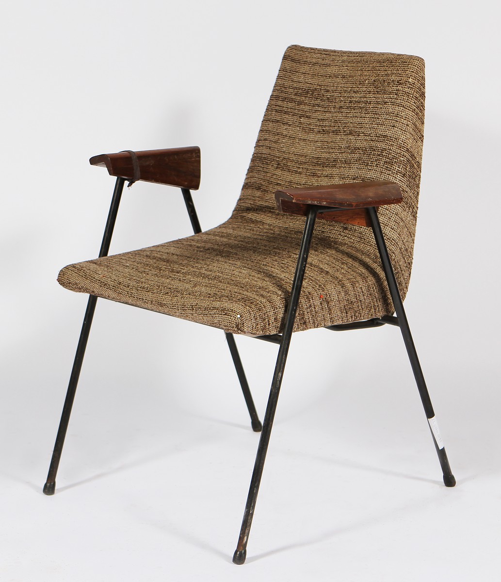 MARTINE' MAURICE Poltroncina. Metallo e tessuto. Cm 60,00 x 80,00 x 60,00. Anni '50.