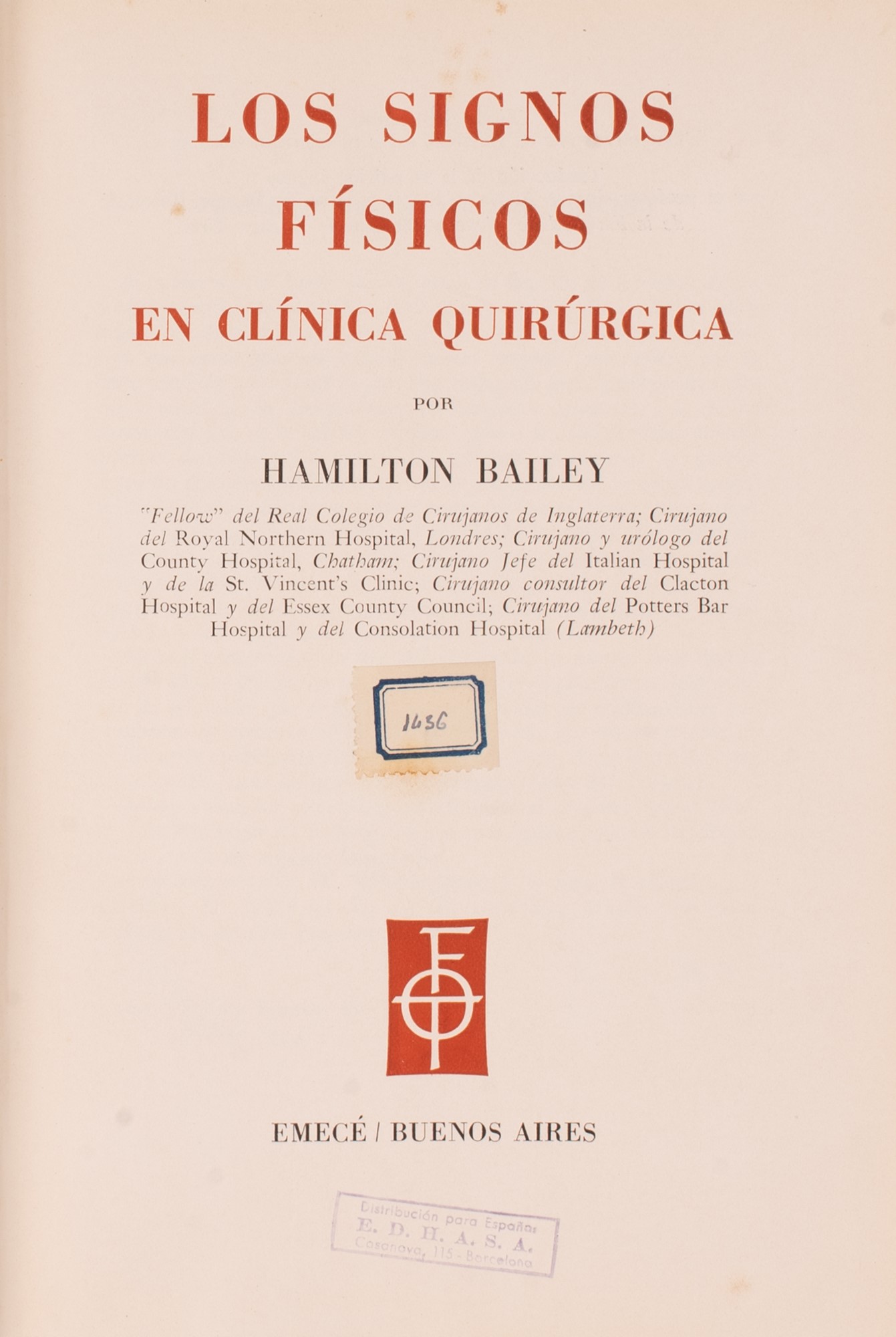 LOS SIGNOS FISICOS EN CLINICA QUIRURGICA. Hamilton Bailey. 1944 Emece. Buenos Aires