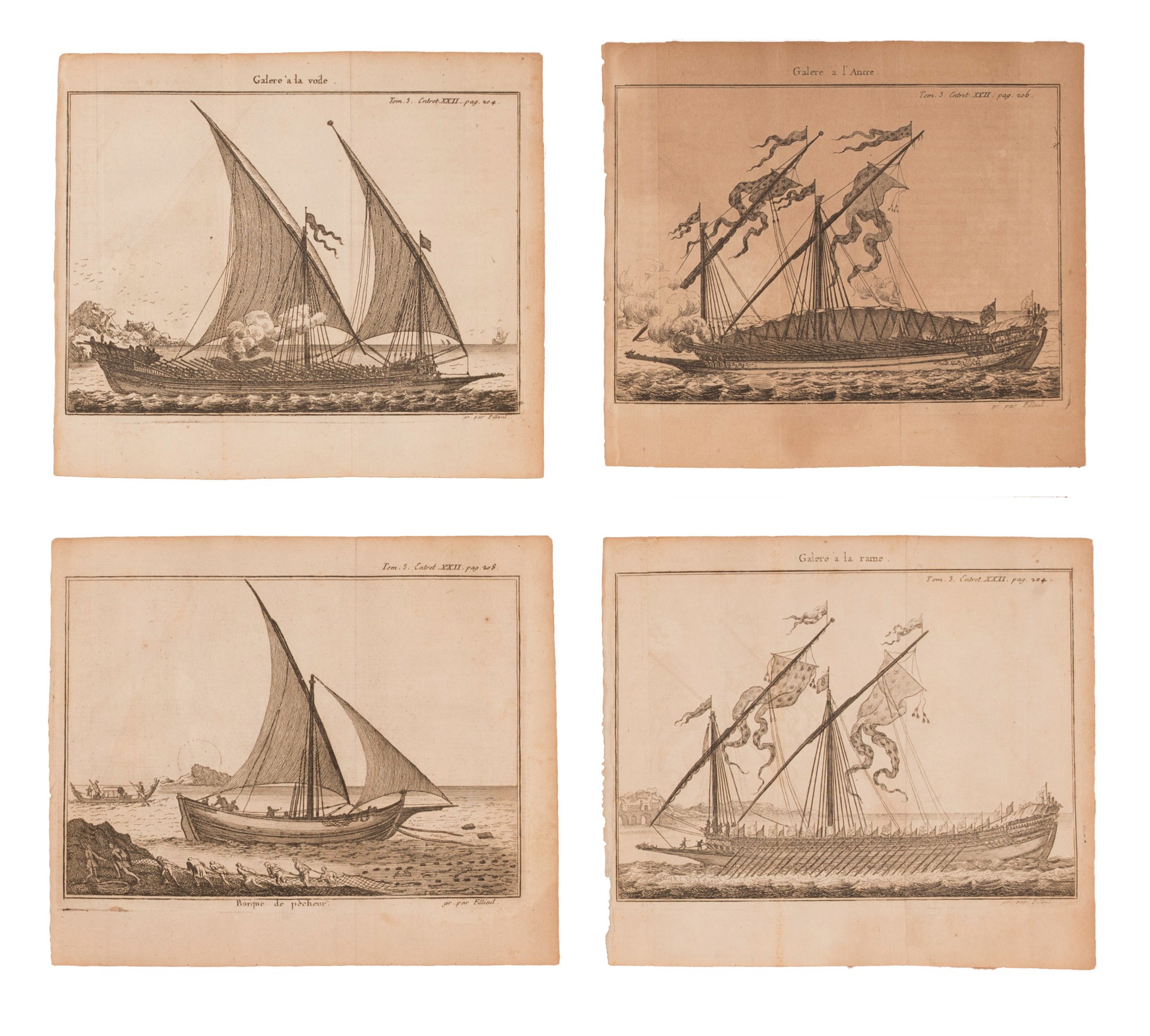 Lot 29 | lotto di 4 incisioni di Filleul rappresentanti - Galere 'a la rame - Galere a' la voile -Galere a' l'ancre - Barque de pequeur
