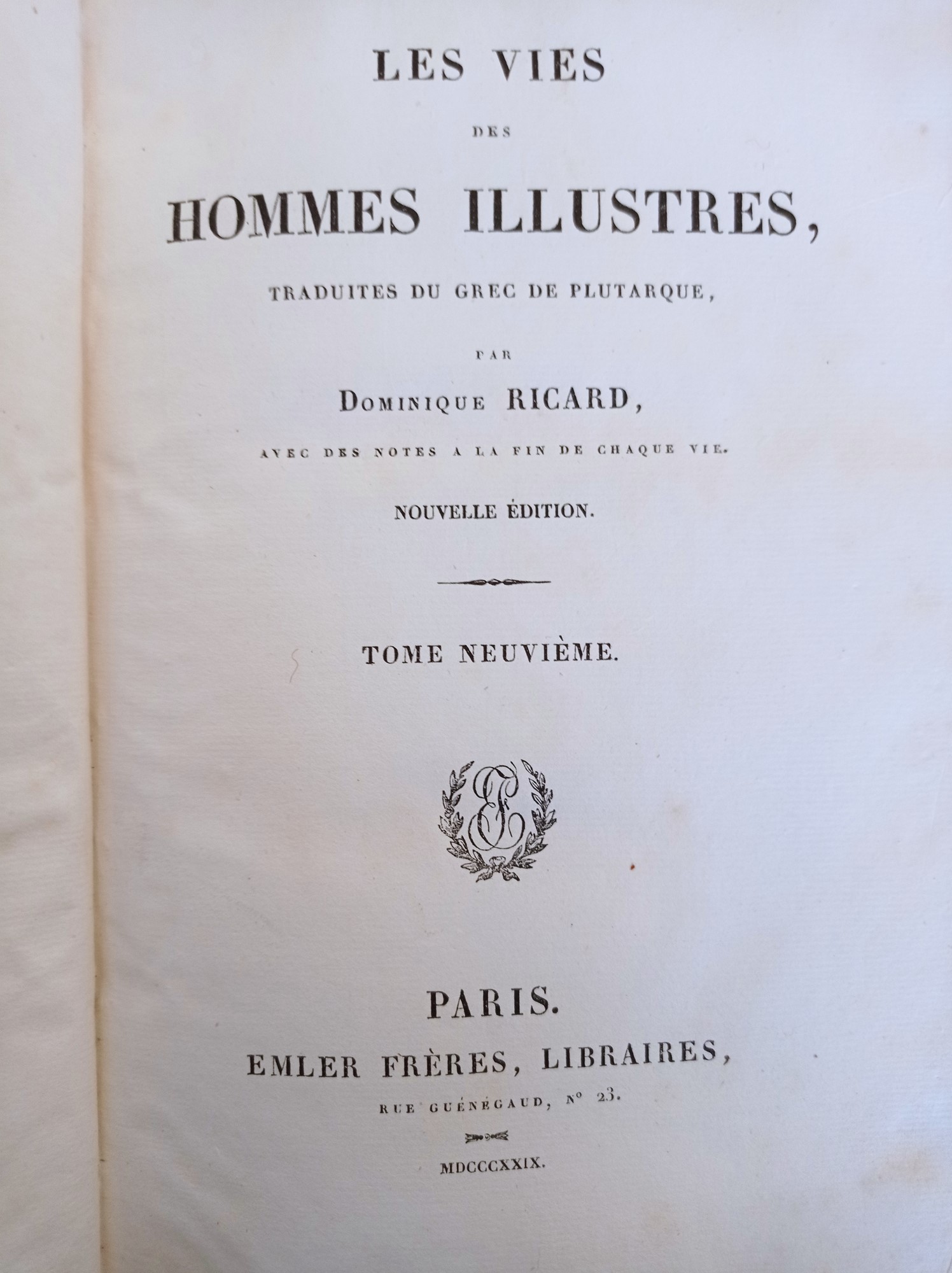 Les Vies des Hommes Illustres. Traduites en français par D. Ricard. Nouvelle édition