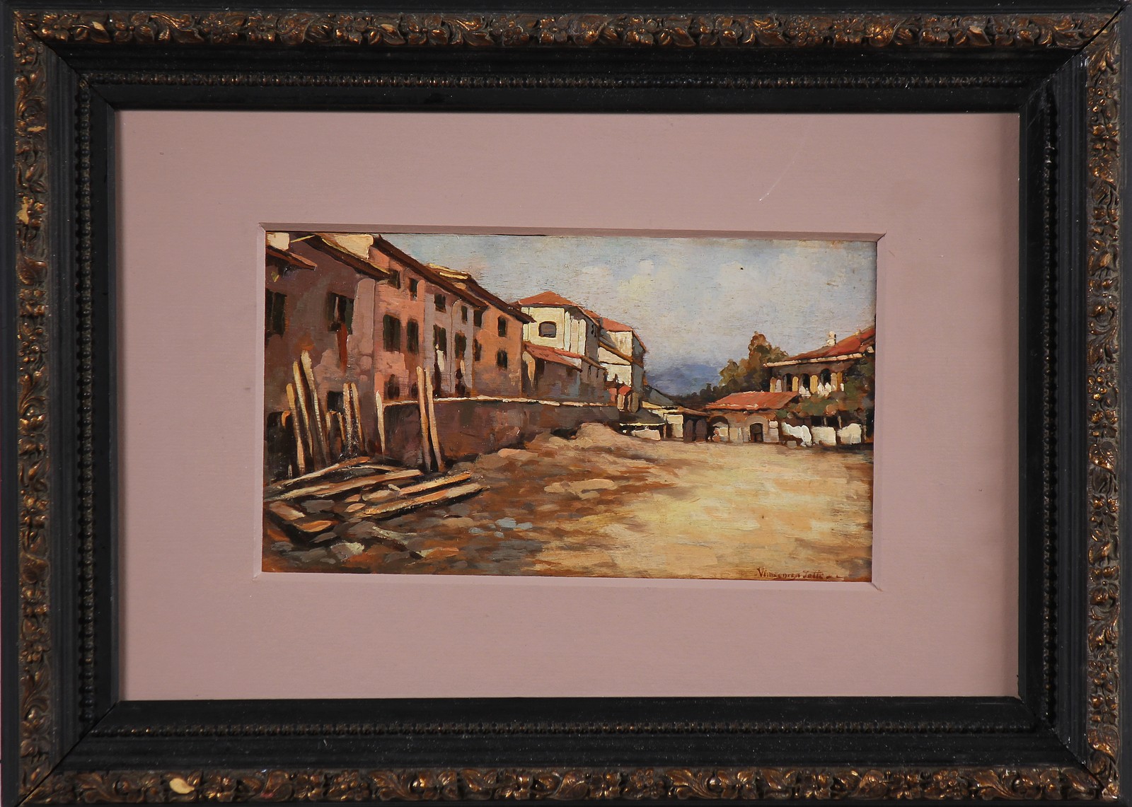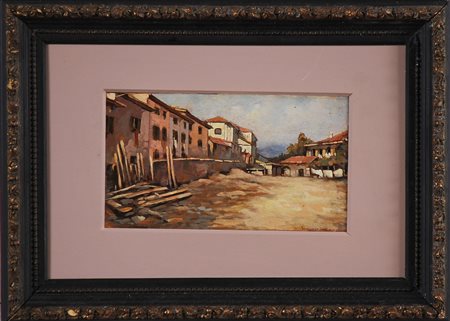 LOTTI VINCENZO (1855 - 1926) Case. Olio su tavola. Cm 23,00 x 13,00. Firma in basso a destra. Cornice presente