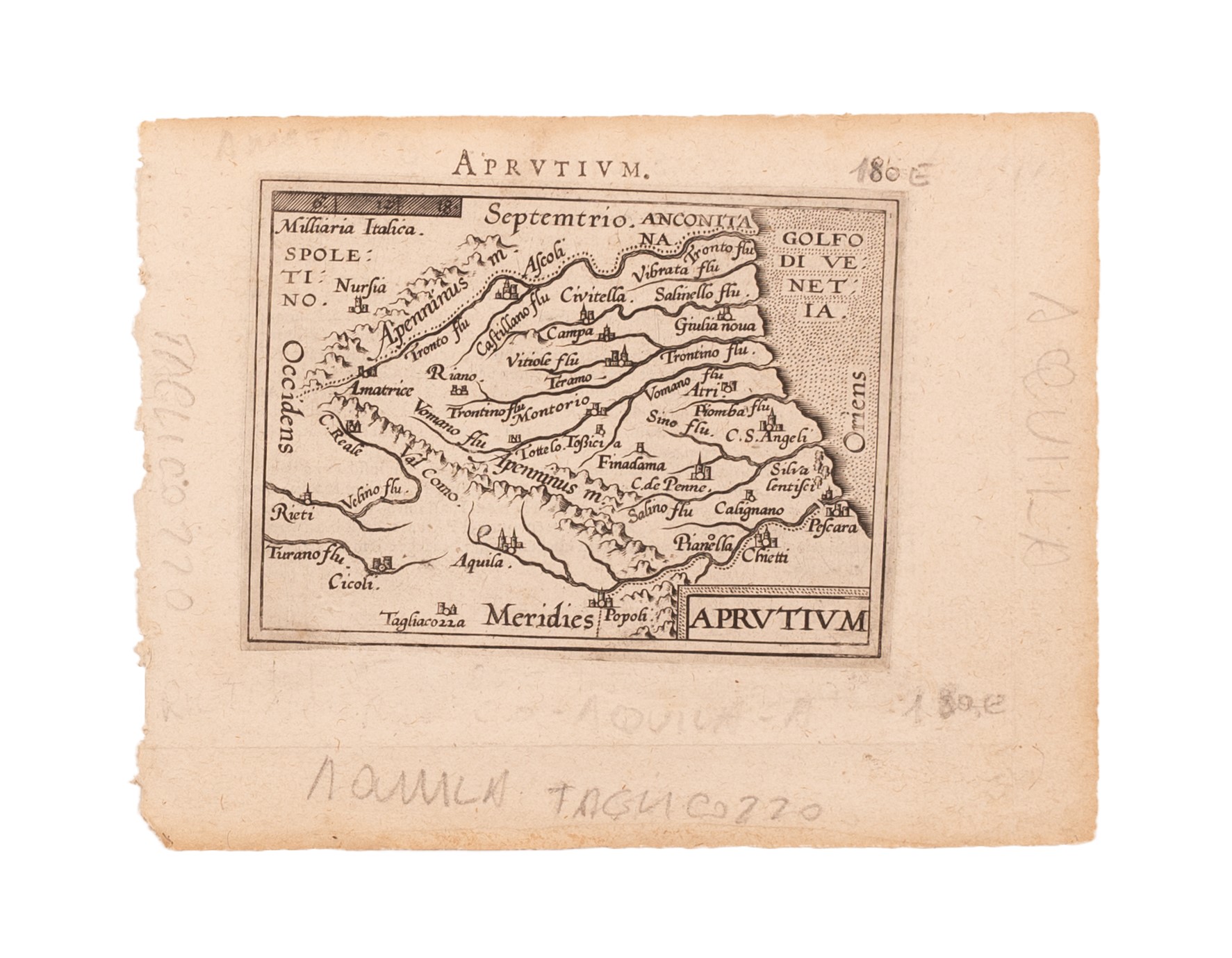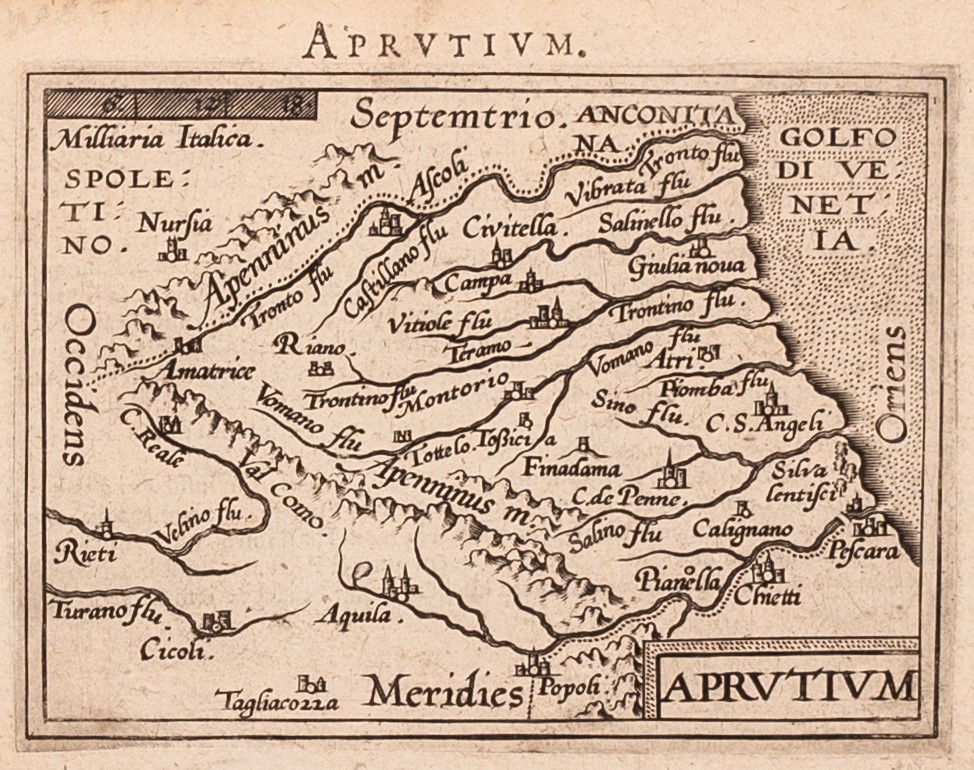 Aprutium Piccola mappa dell’Abruzzo tratta da “Epitome Theatri Orbis Terraum” 1601