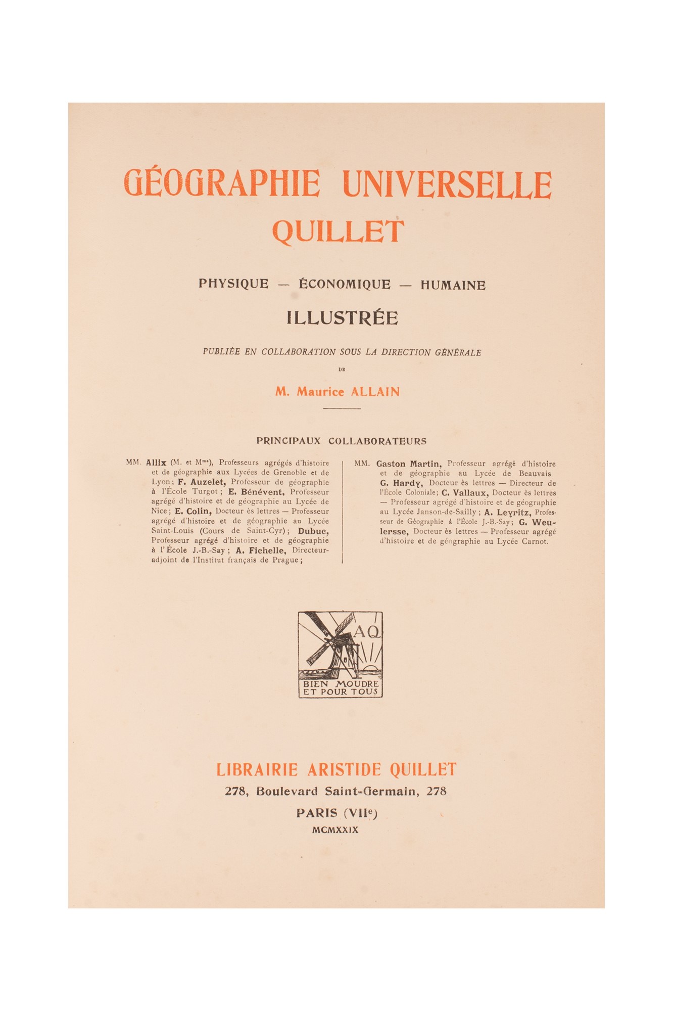 Geografia Universale Illustrata Quillet. Fisico - Economico - Umano. sotto la direzione di Maurice Allain. Libraire Aristide Quillet, 1928