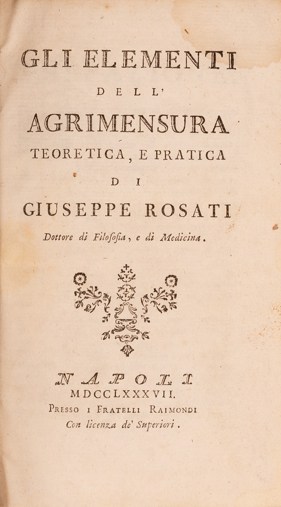 Gli elementi dell'agrimensura teoretica, e pratica di Giuseppe Rosati dottore di filosofia, e di medicina