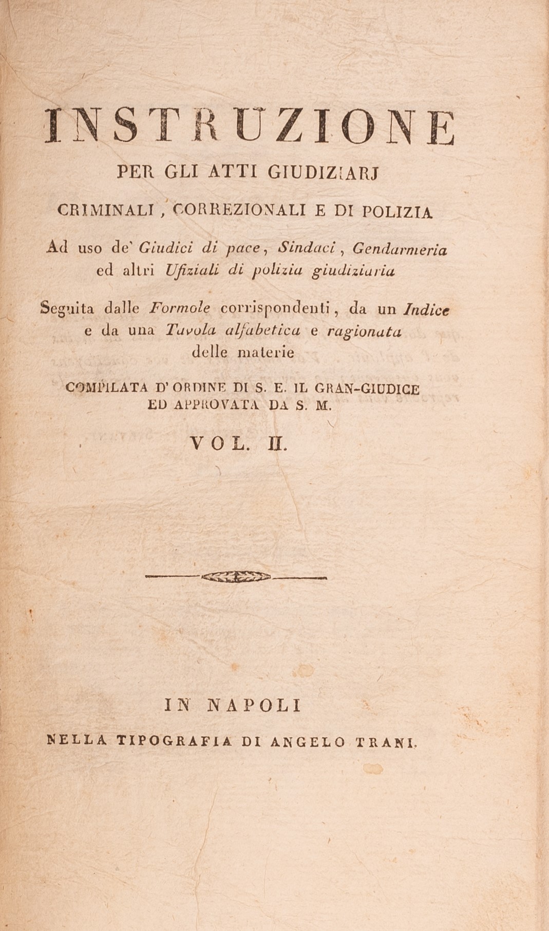 - Istruzione per gli atti giudiziari, criminali, correzionali e di polizia ad uso de' giudici di pace, sindaci, gendarmeria ed altri ufiziali di polizia giudiziaria