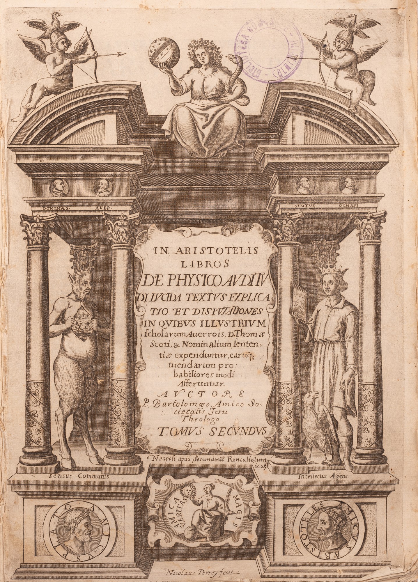 In Aristotelis libros de physico : auditu dilucida textus explicatio et disputationes in quibus illustrium scholarum Averrois, D. Thomae, Scoti & nominalium sententiae expenduntur, earumque tuendarum probabiliores modi asseruntur / auctore P. Bartolomaeo Amico. Volume tome 1, 1629