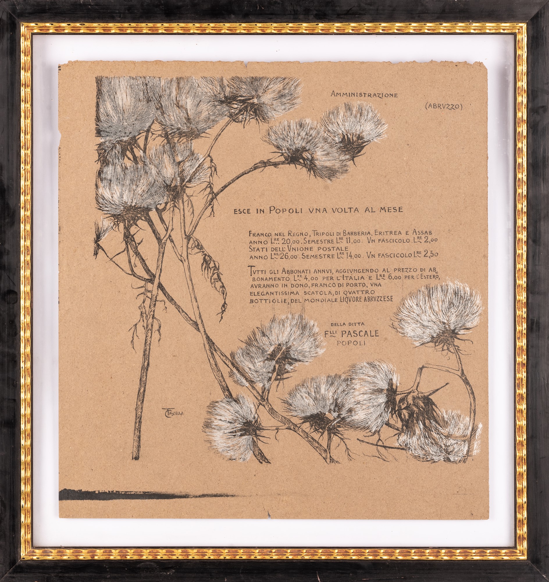 Tommaso, primogenito del noto artista Basilio Cascella e di Concetta Palmerio, svolge il suo apprendistato sotto la guida paterna e nel 1905 collabora con litografie, disegni e dipinti alla rivista Illustrazione abruzzese, diretta dal padre e finanziata dai Fratelli Pascale di Popoli. cm 44x40; con cornice cm 57x54