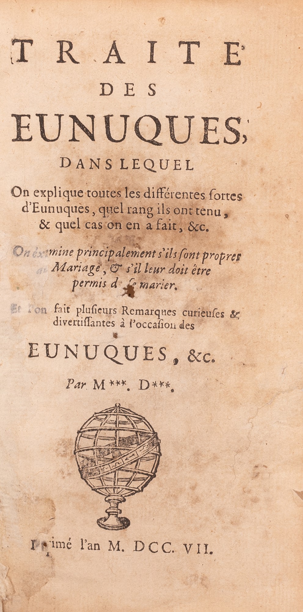 Lot 269 | Traité des Eunuques, dans lequel on explique toutes les différentes sortes d’Eunuques, quel rang il ont tenu, & dans quel cas on en a fait