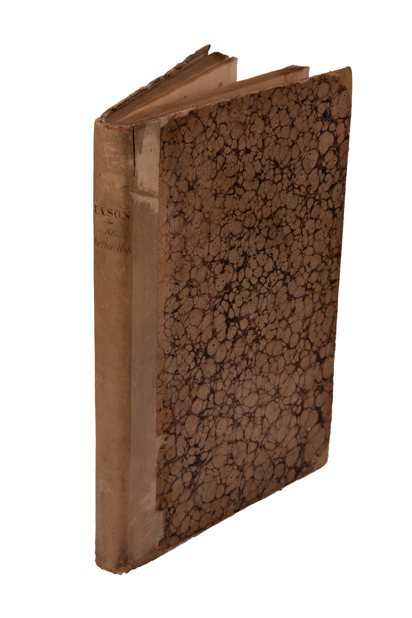 in mezza pergamena con piatti marezzati. precedente firma di possesso cancellata e riscritta dal nuovo proprietario. tracce di foxing.