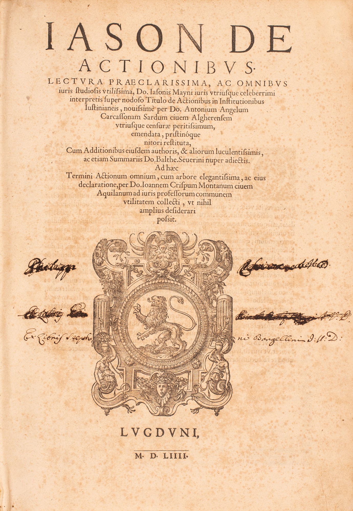 - Iason De actionibus. Lectura praeclarissima, ac omnibus iuris studiosis vtilissima, Do. Iasonis Mayni ... super nodoso titulo de actionibus in Institutionibus Iustinianeis, nouissimè per Do. Antonium Angelum Carcassonam Sardum ciuem Algheresem ... emendata, pristinòque nitori restituta, cum additionibus eiusdem authoris, & ali