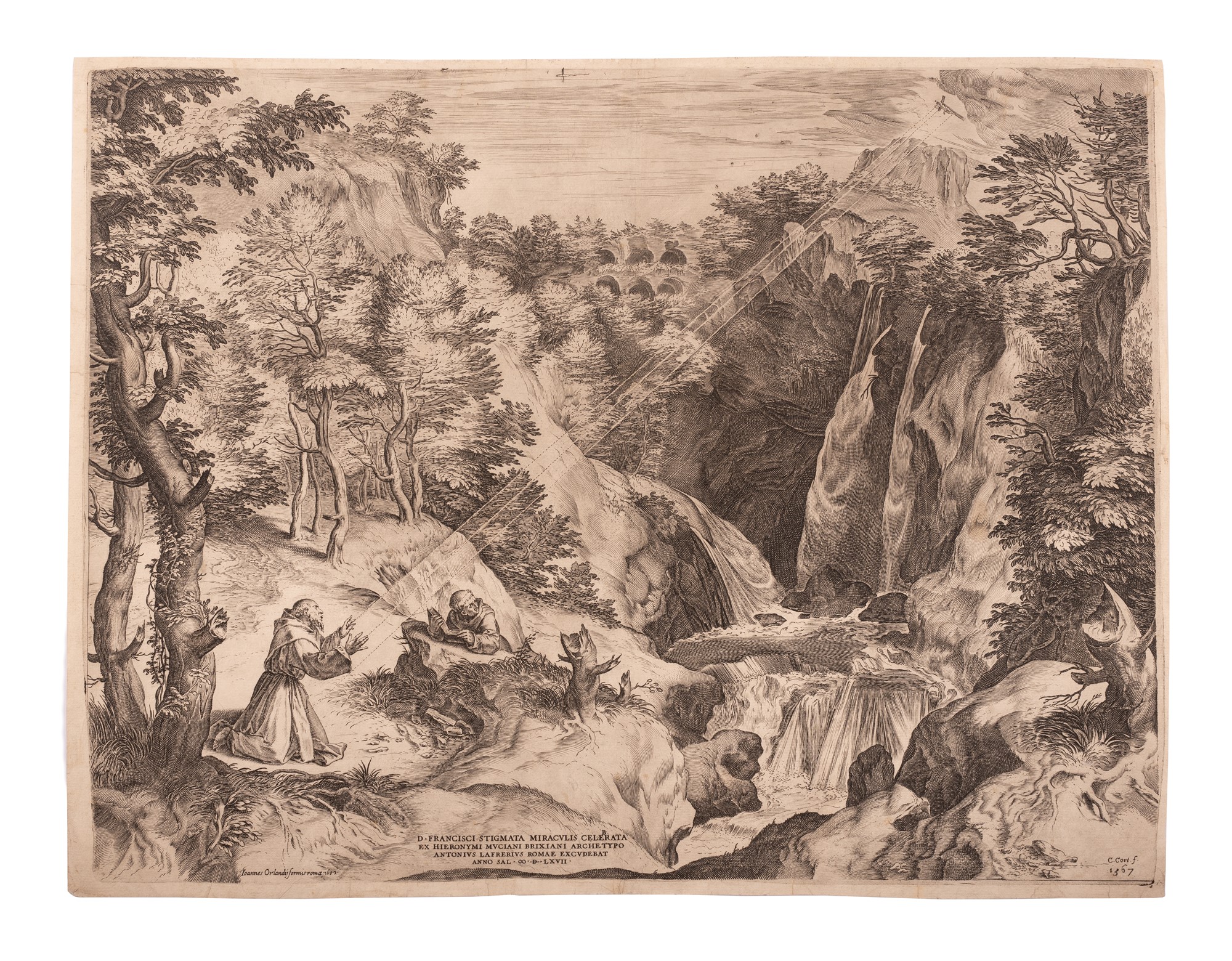 Splendido esemplare in tiratura databile al 1602 nel quarto stato di quattro. Impressione nitida e ricca di contrasto di forte impatto visivo. Gli stati precedenti risultano molto rari. La firma e la data dell’incisore sono visibili in basso a destra. Prova stampata su carta vergellata avente filigrana “Scudo”. Si segnala uno strappo perfettamente restaurato e non visibile al recto. Al verso antica scritta a inchiostro bruno. Da un soggetto di Gerolamo Muziano